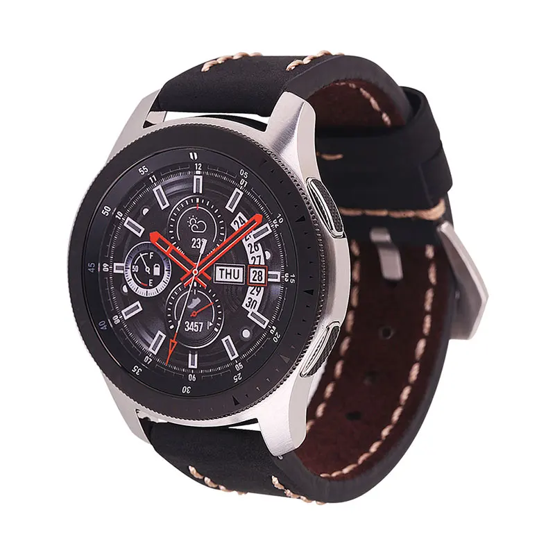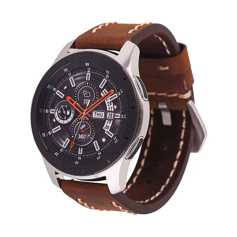 Отличный ремешок. Пахнет кожей. Дужки уже в комплекте, как на часах galaxy wach 46 мм. Подошли идеально! Ремешок смотрится солидно!