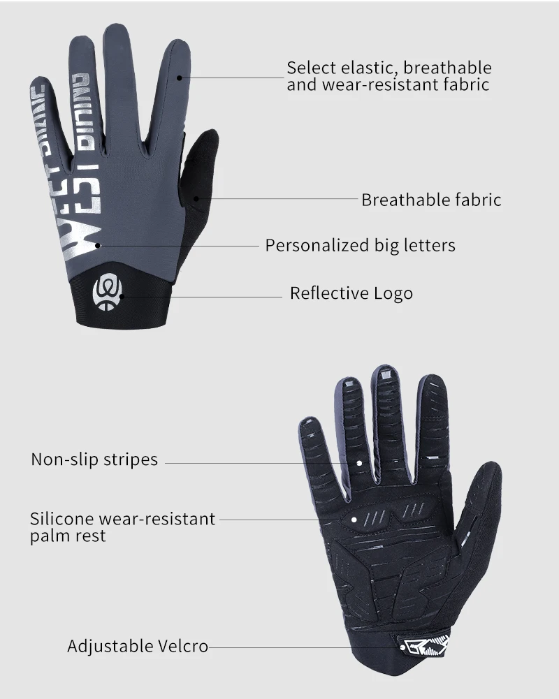 Мужские велосипедные перчатки WEST BIKING, Нескользящие велосипедные перчатки с закрытыми пальцами, велосипедные перчатки для горного и шоссейного велосипеда, светоотражающие дышащие спортивные перчатки для тренажерного зала