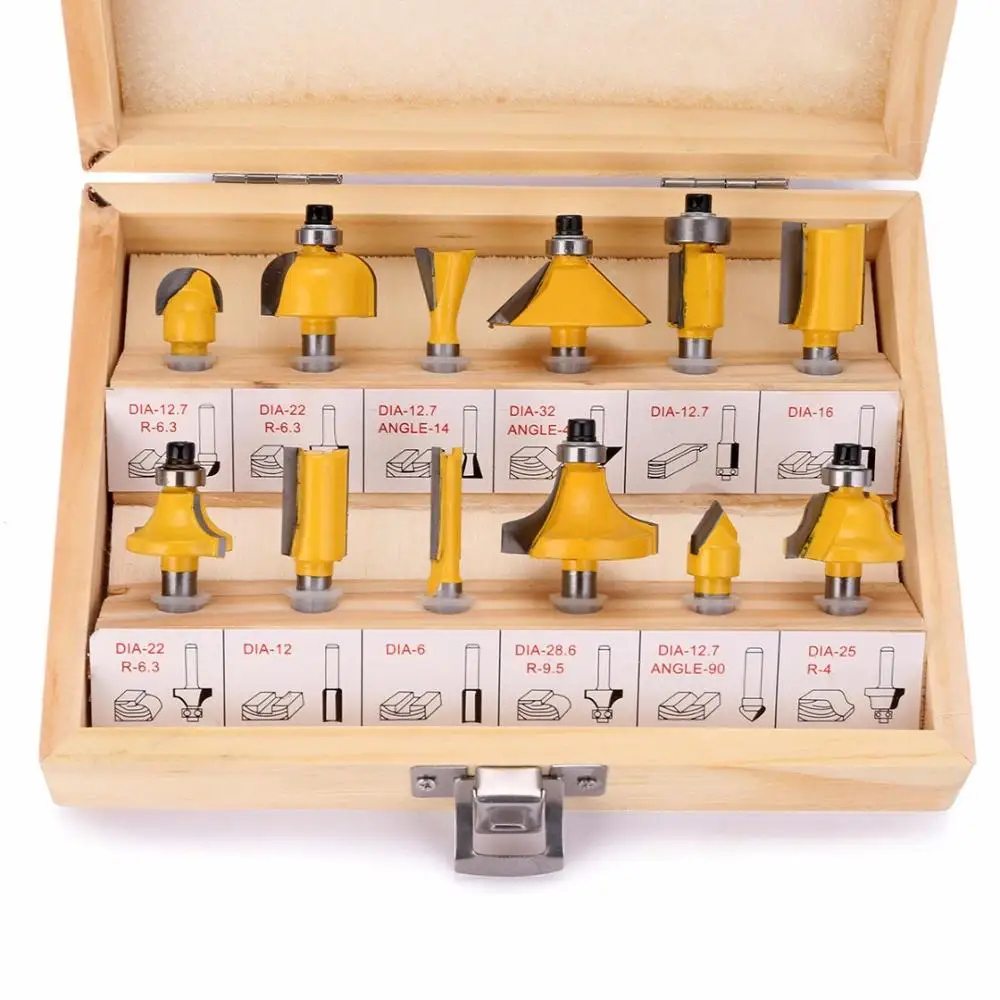Augusttools 12/15 шт. деревообрабатывающий набор инструментов для вырезания гребней и 1/4 «Концевая фреза 8 мм хвостовик деревянные Резак Карбид отделка гравировка по дереву машинка для режущих инструментов