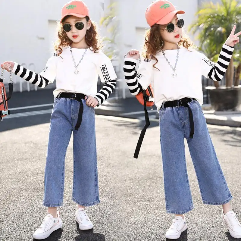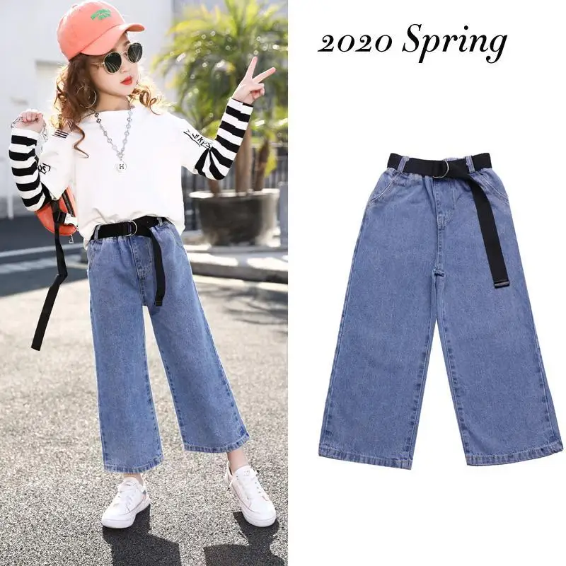 Джинсы для девочек, демисезонные, повседневные, 2021, От 4 до 14 лет