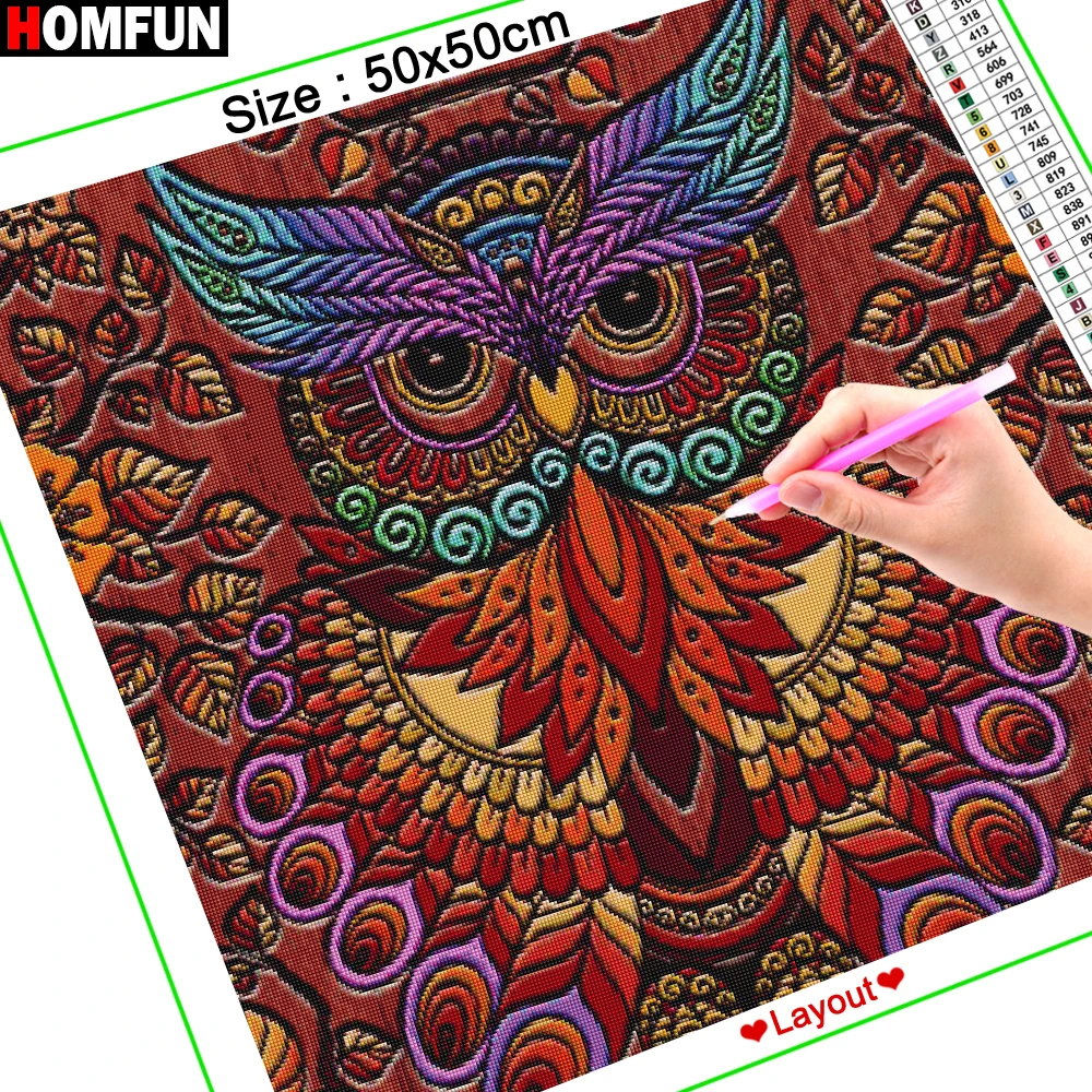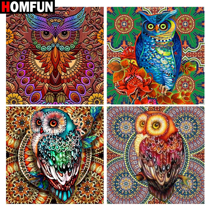 Алмазная 5d-картина HOMFUN Сова, мандала, цветок, вышивка крестиком, полное покрытие, квадратныекруглые, домашний декор, подарок