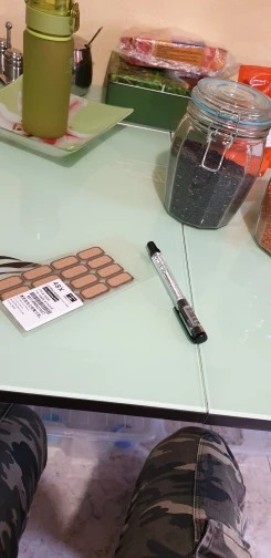 Очень приятные наклейки, они мягкие, за счёт этого их можно приклеить к рельефной поверхности. Маркер лучше брать перманентный, иначе чернило не впитается. Если приклеили криво, можно отклеить и поправить, проклейка хорошая, не "линяет" на поверхность куда клили.