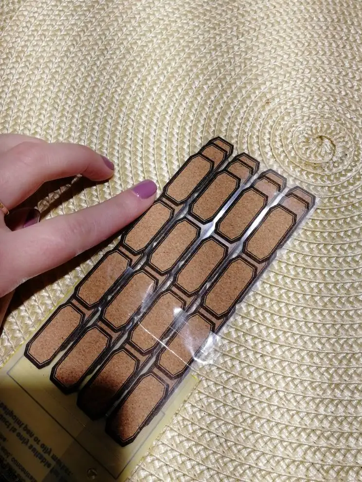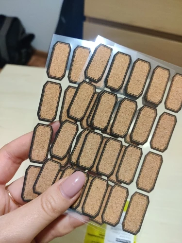 Они просто волшебные. Посылочка шла чуть больше месяца, не отслеживалась, как же сильно я её ждала :) Наклейки довольно маленькие 3х1.5 см, но мне подходят, у меня баночки не большие. Очень приятные, мягкие, клеются и отклеиваются очень хорошо, основа видимо, тканевая, плотная. Писала маркером-ручкой, ничего не расплывается, пишется гладко. Я в восторге, закажу ещё побольше :)