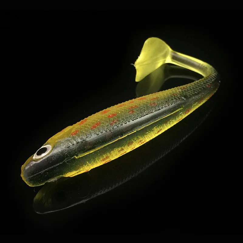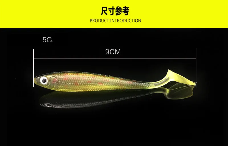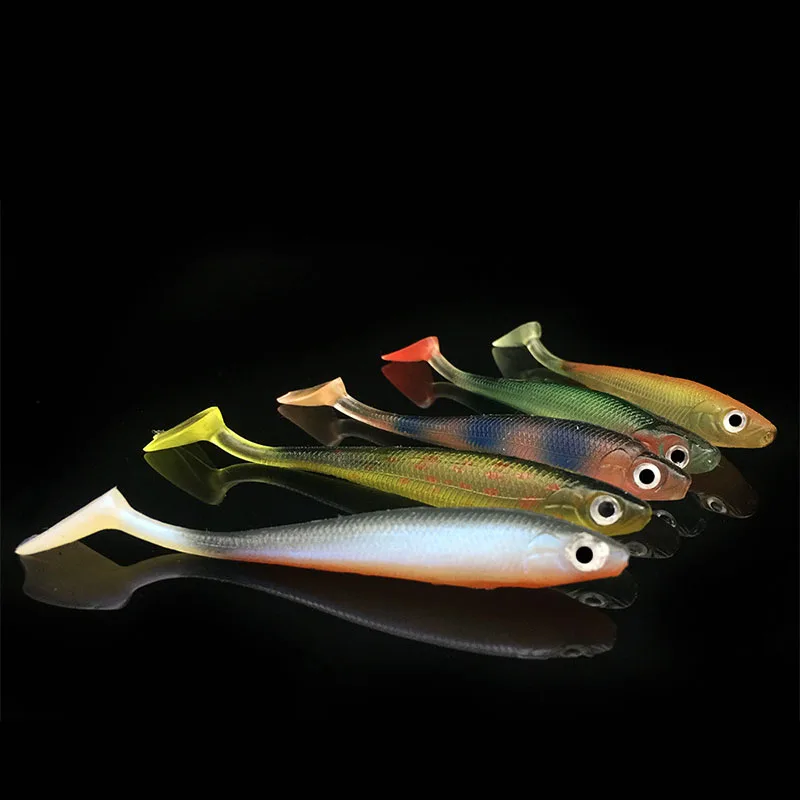 5 шт.лот радужные рыболовные приманки 90 мм 5g воблеры для ловли карпа Мягкие силиконовые искусственные двухцветные приманки T-Tail