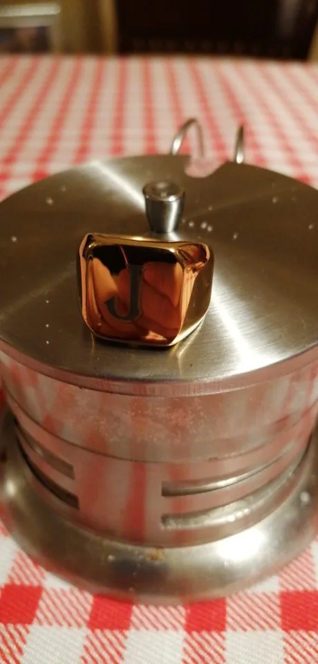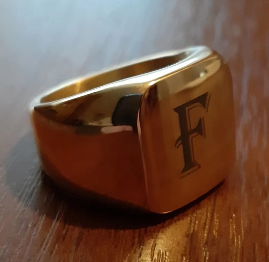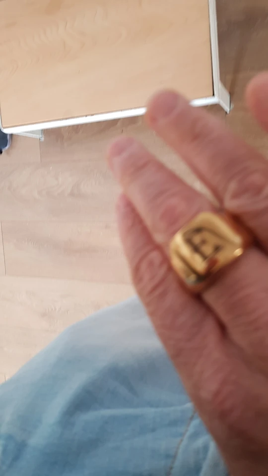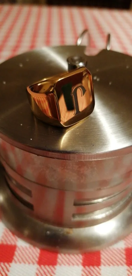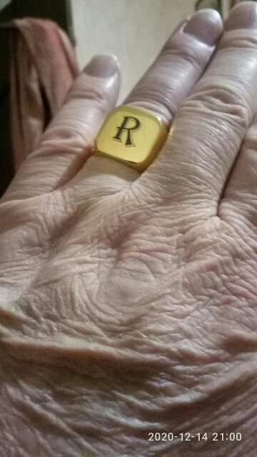 кольцо видно,что из металла- нержавейки,так как тяжёлое,носить долго- устает палец.Целый день не поносишь.Я, как токарь большого стажа- советую,кто изготавливает печатки на пальцы- не точить слишком толстые,их носить- устанешь и не очень смотрятся толстостенные!!! А в целом- печатка сделана отлично,отполирована классно и гравировка симпатичная.Спасибо большое! Но к совету моему прислушайтесь,тогда продажа будет моментальная с большим спросом!!!