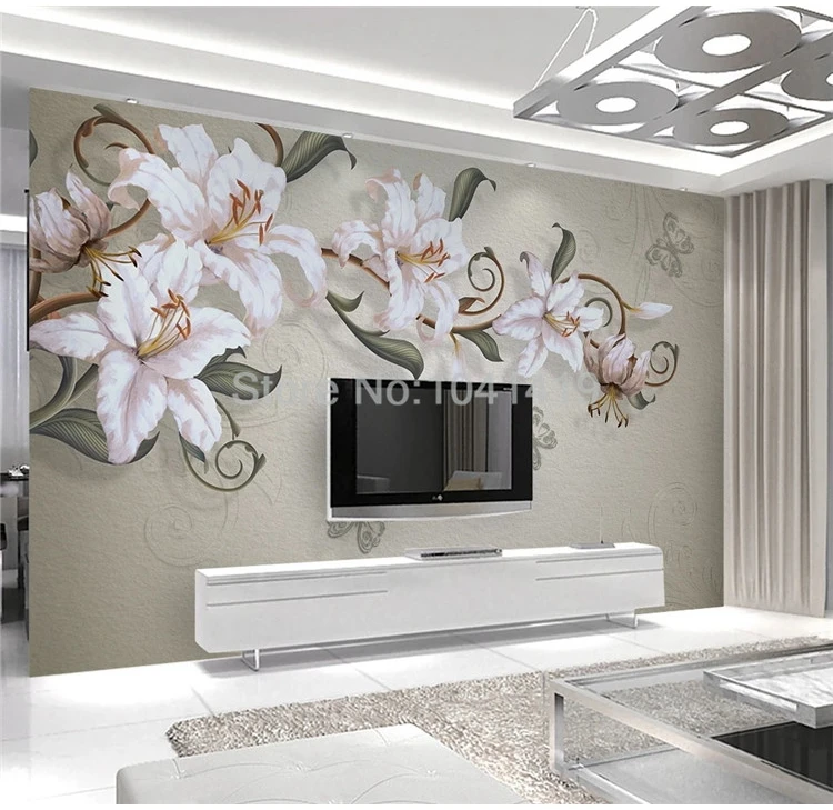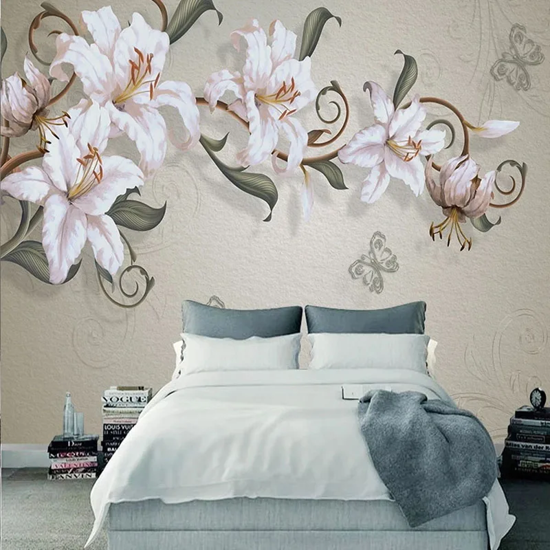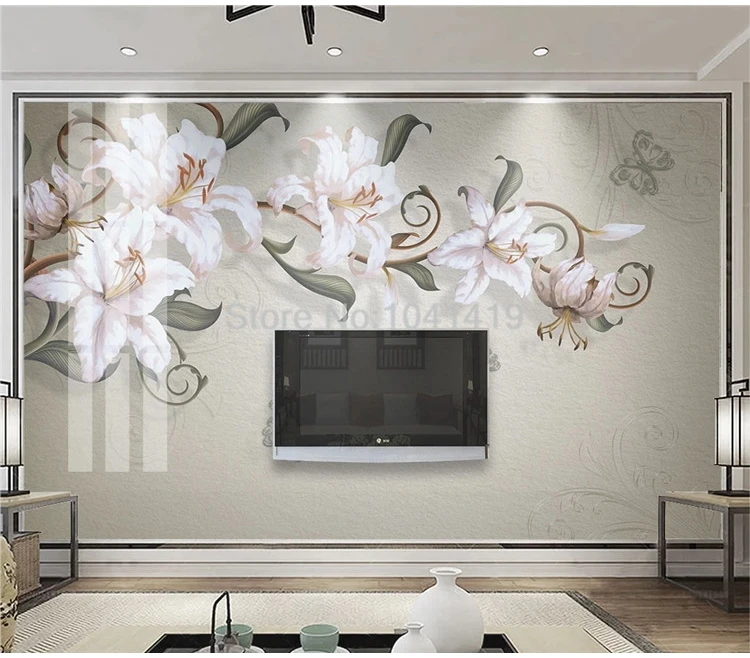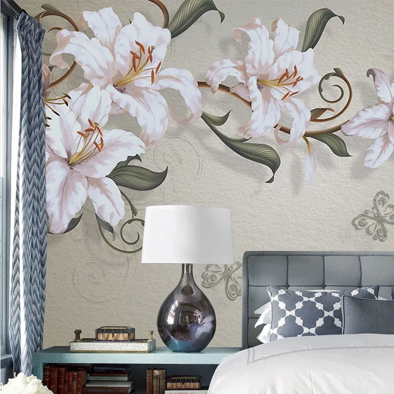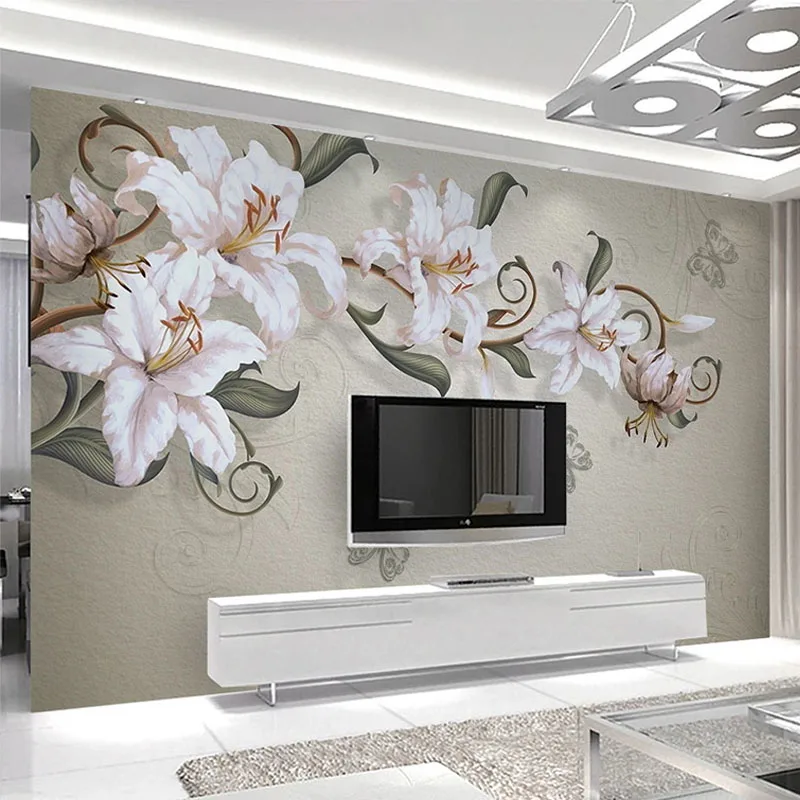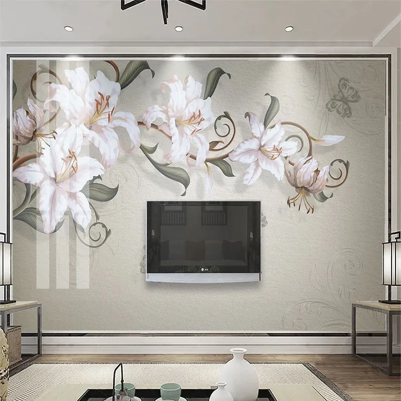Пользовательские Настенные обои, современная простая ручная роспись маслом лилии, цветок, фреска, гостиная, спальня, фон, наклейка на стену 3D