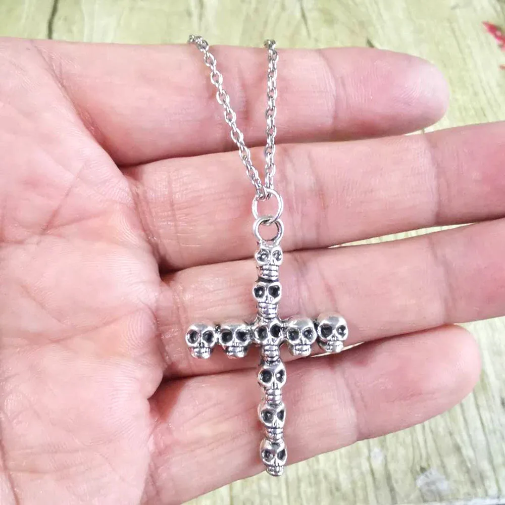 Новые модные ожерелья с крестом для женщин и мужчин, подвеска в виде черепа и скрещенных костей, длинное ожерелье с цепочкой в винтажном стиле, ювелирные изделия в стиле панк, оптовая продажа, подарок