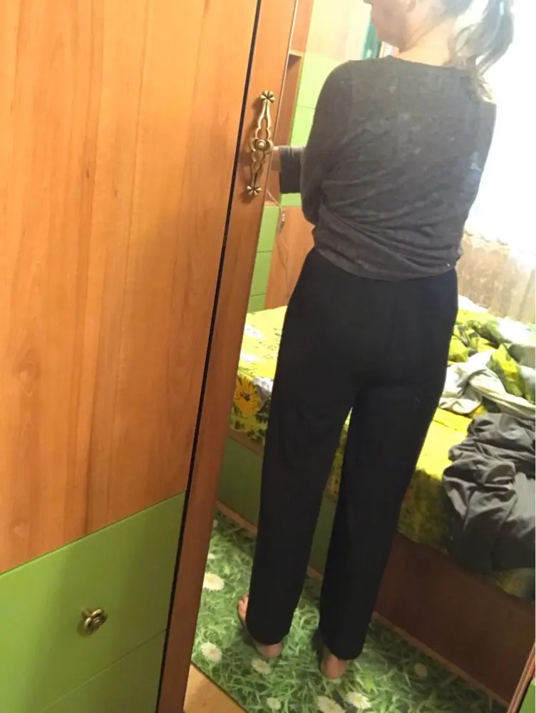 Насчёт качества говорить ничего и не нужно, штаны очень приятные к телу, нигде нитки не торчат, никаких дефектов нет. Снизу не подшиты. Какими станут после стирки, не знаю, но думаю, если стирать на бережном режиме, то все будет в порядке. Мой рост 169, талия 63, обхват бёдер 90, заказывала размер S. Посадка на талии, что делает фигуру красивее. Легкие, не просвечивают, носить тёплой осенью самое то. Длина мне по щиколотку, но я так все брюки ношу. Можно посадить штаны чуть ниже и штаны будут не укороченными, но будет висеть мотня. Для девочек примерно с моим ростом и параметрами чуть больше, чем у меня, размер S будет идеален. Заказывайте, не пожалеете. Доставка быстрая. Две недели.