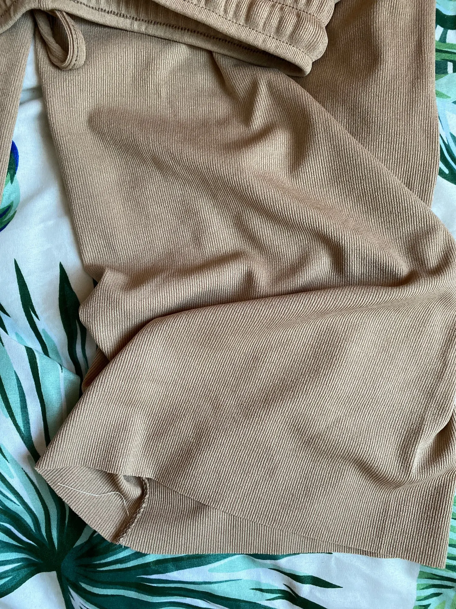 Я взяла размер s и цвет хаки. Мои параметры: 63/89. На мой рост 161 длина с небольшим запасом. Материал полиэстер, приятный к телу, совсем не электризуется, не трещит, хорошо тянется. Талия на резинке, не давит. Есть завязки. Посадка высокая, фасон прямой, немного расклешенный. Подробнее в моем Инстаграм styleforme8 и телеграм styleforme8
