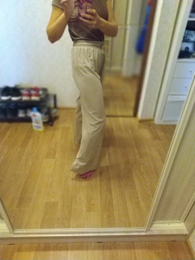 Штаны понравились На мой рост 166 длинна полная Если хотите полную длину выбирайте с пометкой full❗️ Размер заказала S, но M устроила меня бы больше , хочется что бы пошире были Мои параметры 59/89 Цвет : светлый беж Имейте ввиду ткань тонка струящаяся будет облегать даже там где не хотелось бы , я взяла их для дома мне норм ) Резинка относительно тугая Доставка 14 дней ( Москва )