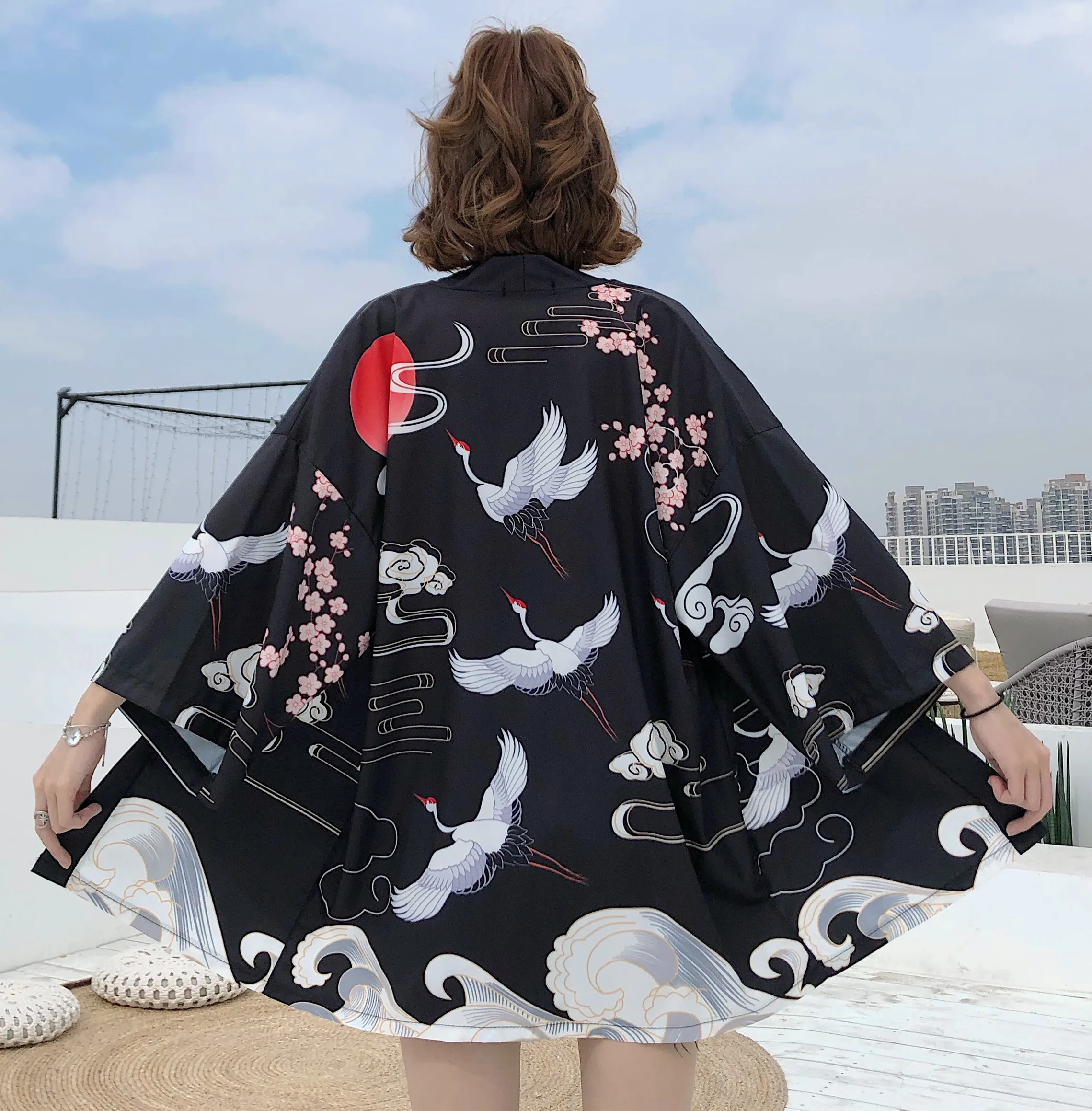 Кимоно женское с принтом облаков журавлей, Повседневный Кардиган в ...