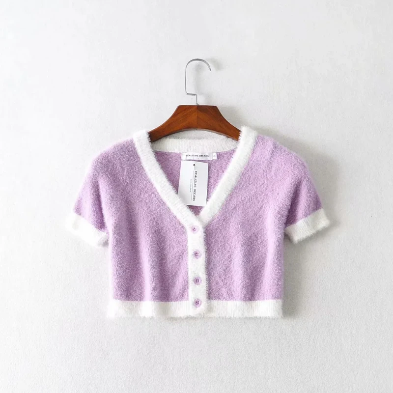 Розовый кардиган, женские свитера, корейский укороченный свитер, Осенние Топы с длинным рукавом, v-образный вырез, короткий Укороченный кардиган, мохеровый свитер, осень 2019