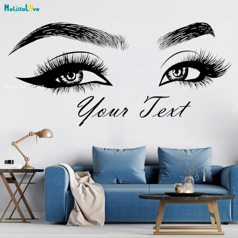 Большой размер ресницы изящная Настенная Наклейка ресницы брови красота салон девушка пользовательский текст макияж виниловые наклейки YT3630