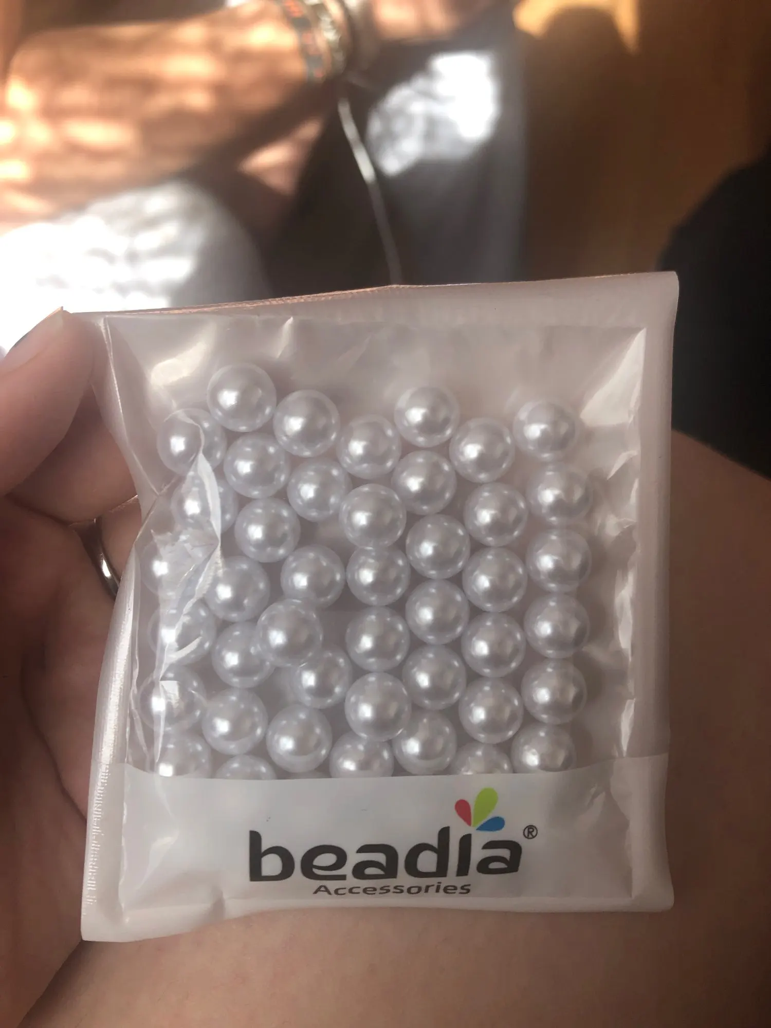 первой что не понравилось, цвет не чисто белый, отдаёт зелёным(камера оттенок не передаёт), на одежду белого цвета не сделать уже, второе-запах ацетона ужасный, ну и третье не очень важное-попадаются бракованные бусинки. С продавцом не общалась