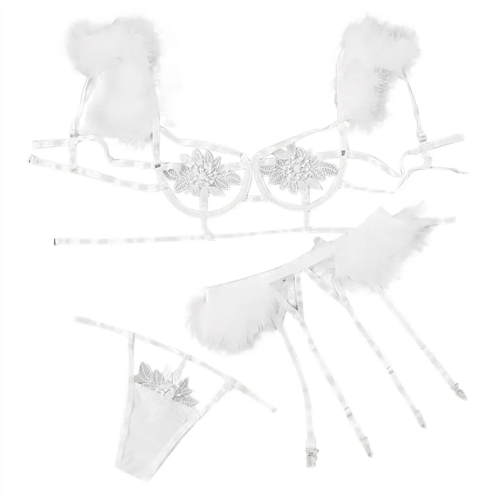 Женский сексуальный комплект с бюстгальтером, новое модное изысканное Сетчатое нижнее белье, бюстгальтер + подвязки + трусы, ночное белье с вырезом, 2020