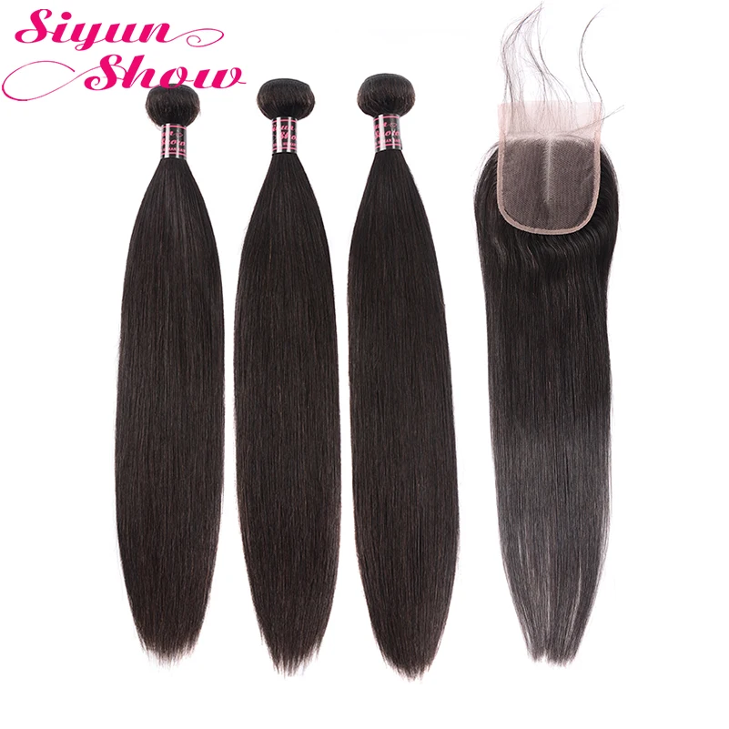 Siyun показать бразильские прямые волосы пучки с закрытием 30 дюймов пучки человеческих волос пучки с закрытием сделаны в 4x4 закрытие парик