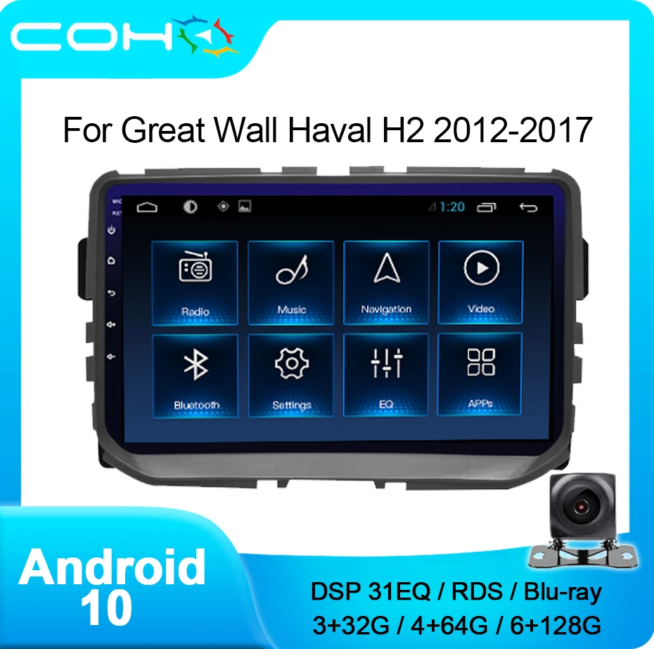 Автомобильный плеер COHO For Great Wall Haval H2 2012-2017, Стерео Авторадио на базе Android 10,0, с восьмиядерным процессором, 6 + 128 ГБ