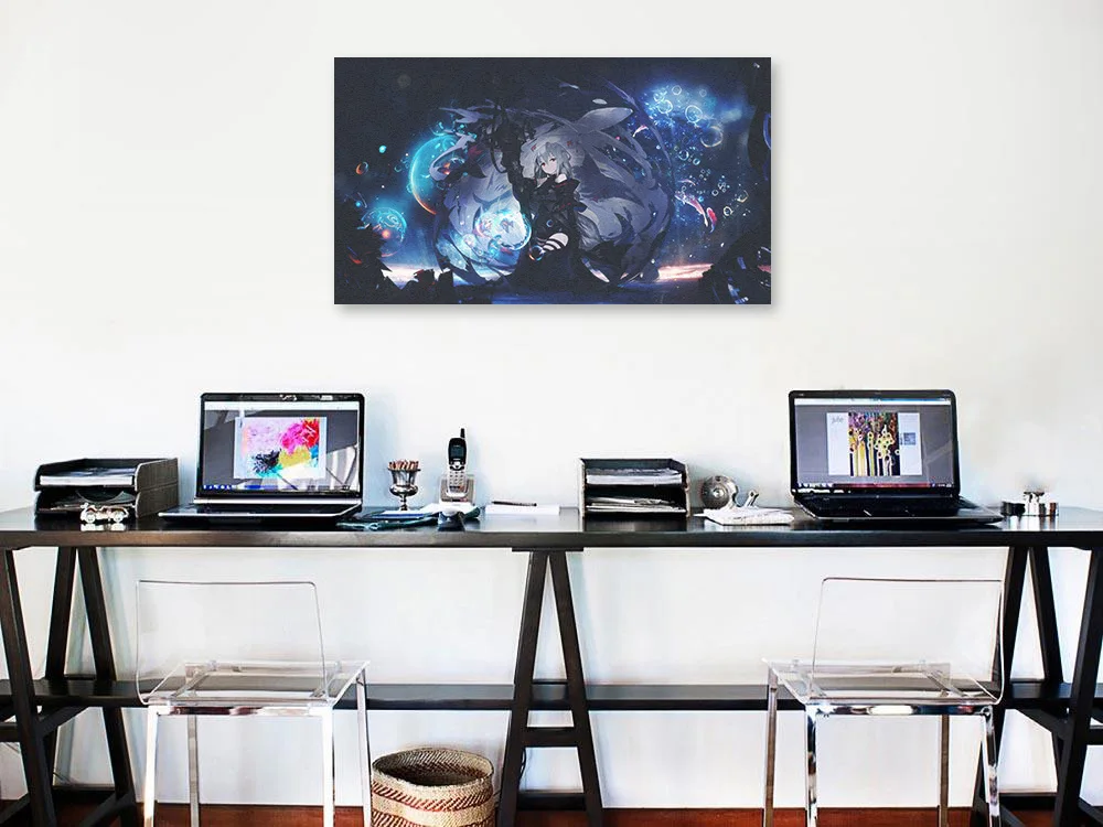 Аниме плакат в рамке, деревянная рамка, холст, художественное оформ...
