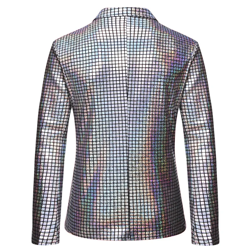 Блестящий блестящий мужской блейзер в радужную клетку, новинка 2022, мужской блейзер с отложным воротником для клуба, DJ, куртка, сценическая одежда для певцов