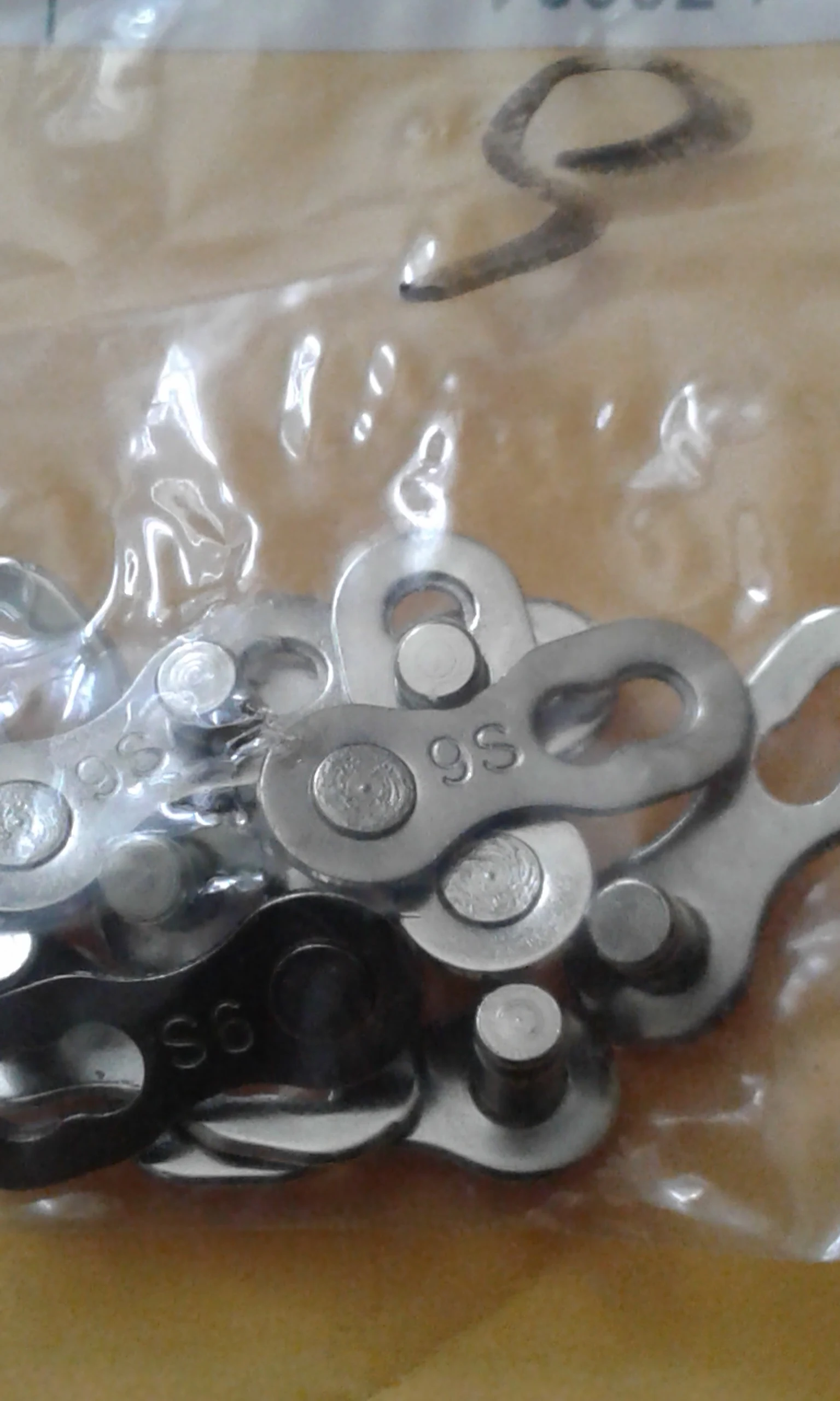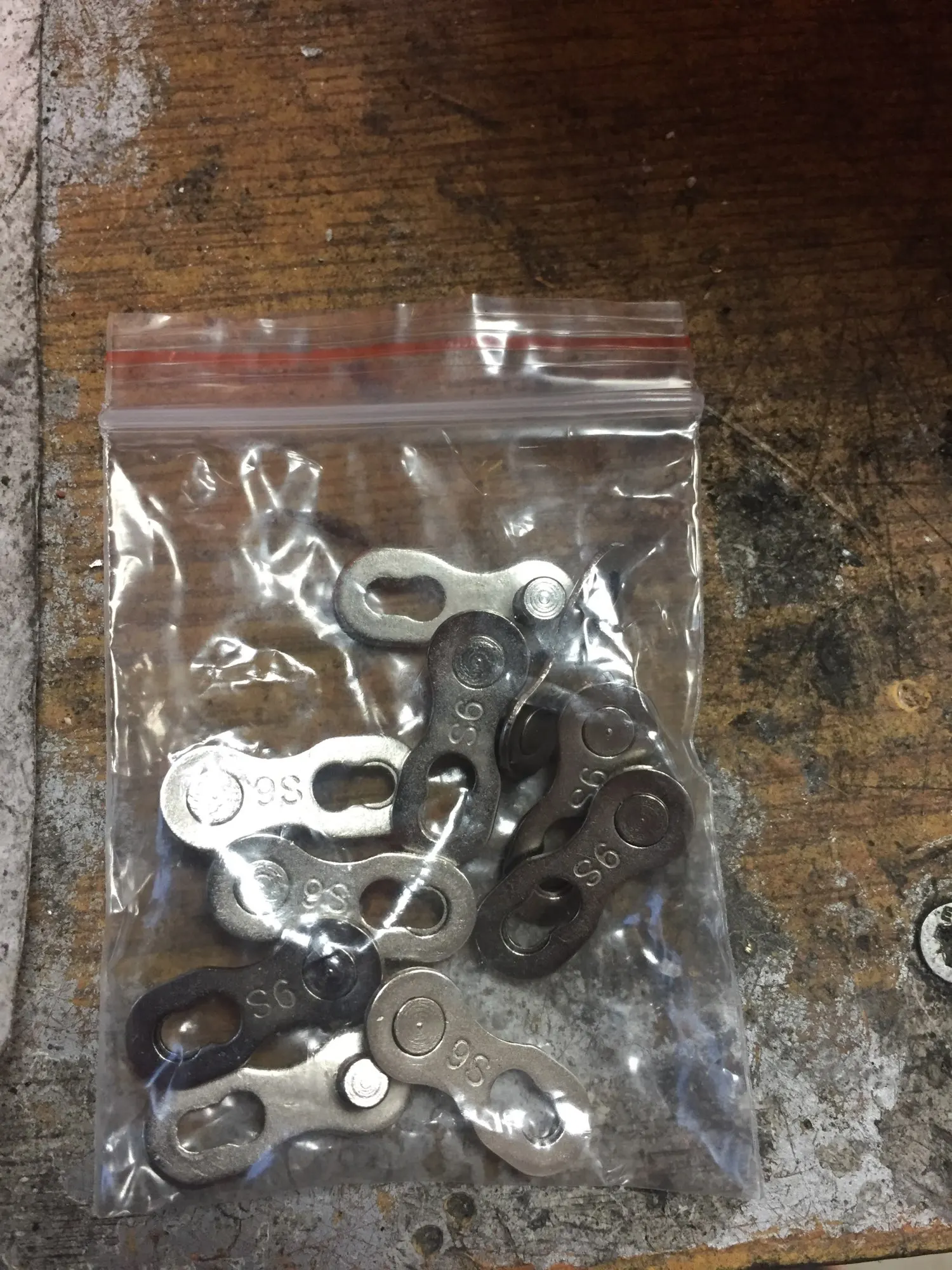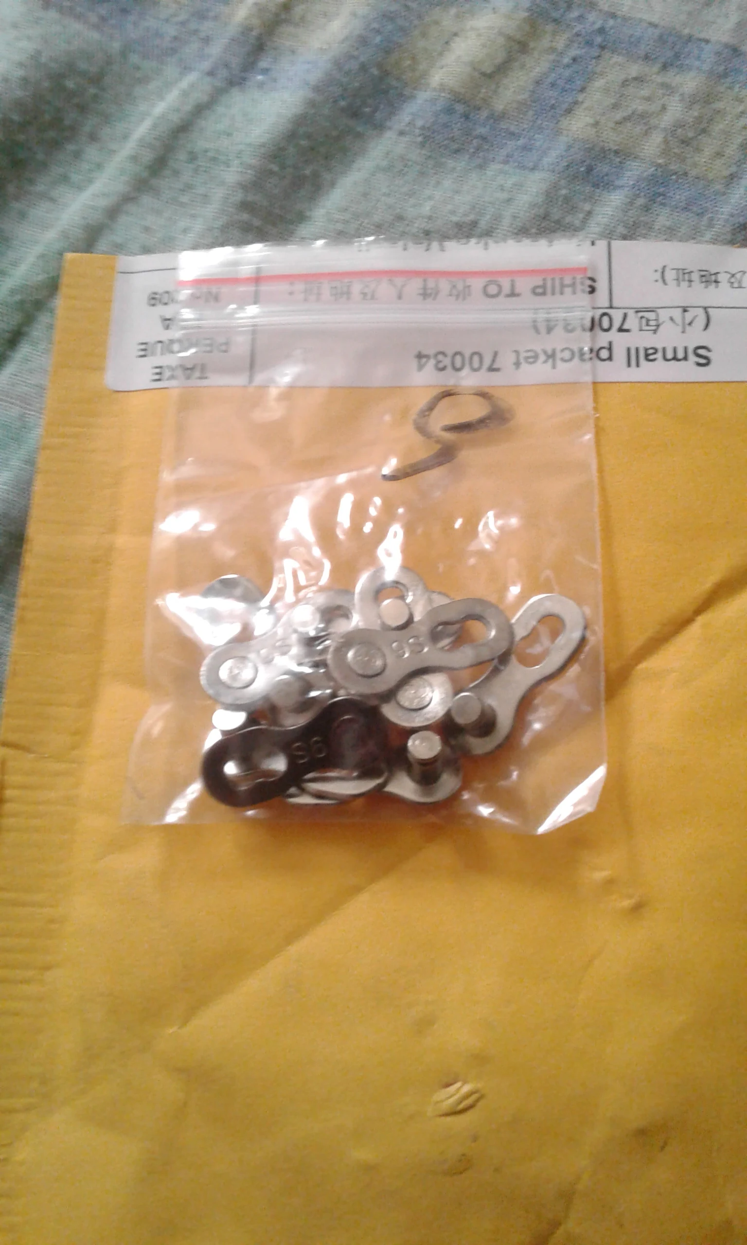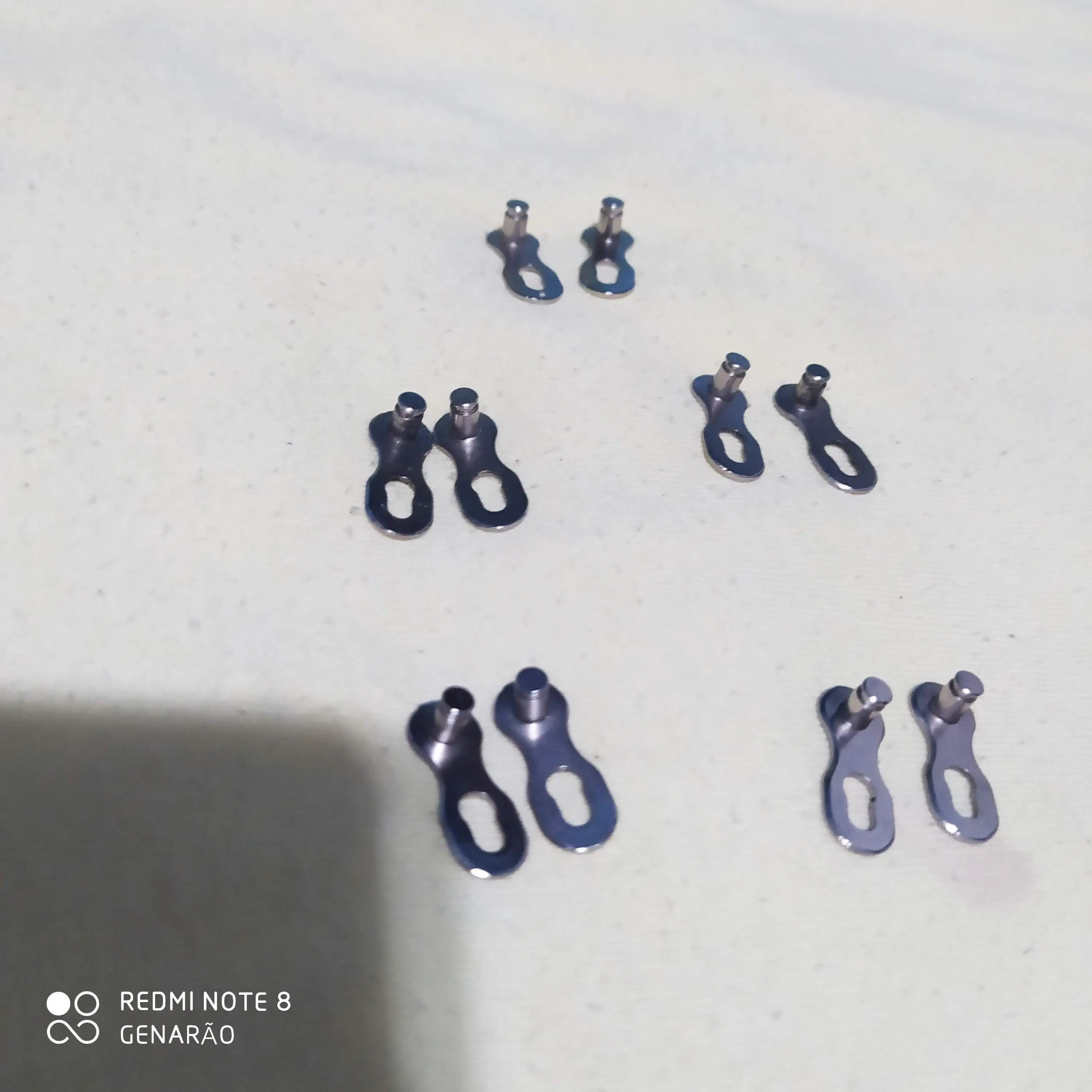 Посылка шла почти два месяца. Замок 8 ск с первого раза не защёлкнулся, как бы сильно не тянуть цепь. После долгих манипуляций и тренировок на сильно изношенной цепи с удалёнными роликами на крайних звеньях, удалось защёлкнуть замок сначала на одной половинке замка, потом на другой. Затем после ещё нескольких защёлкиваниях-снятиях на новой цепи замок стал работать как надо. На фото хорошо видно, чем именно отличаются новые замки от разработанных. Металл достаточно прочный, не пластилиновый, посмотрим, как будет себя вести в реальных условиях.