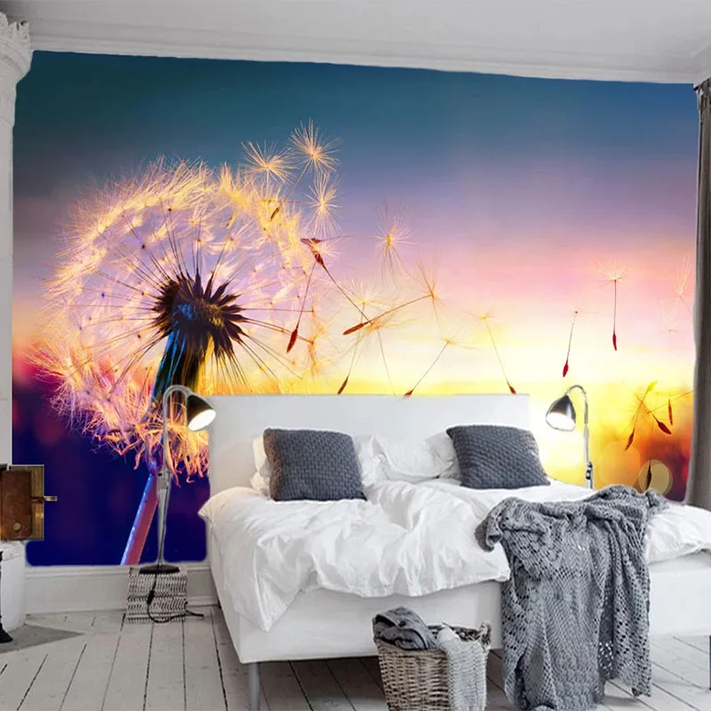 Современные 3D обои, романтический красивый закат, Одуванчик, цветок, пейзаж, фотообои для гостиной, ТВ, диван, спальни, домашний декор