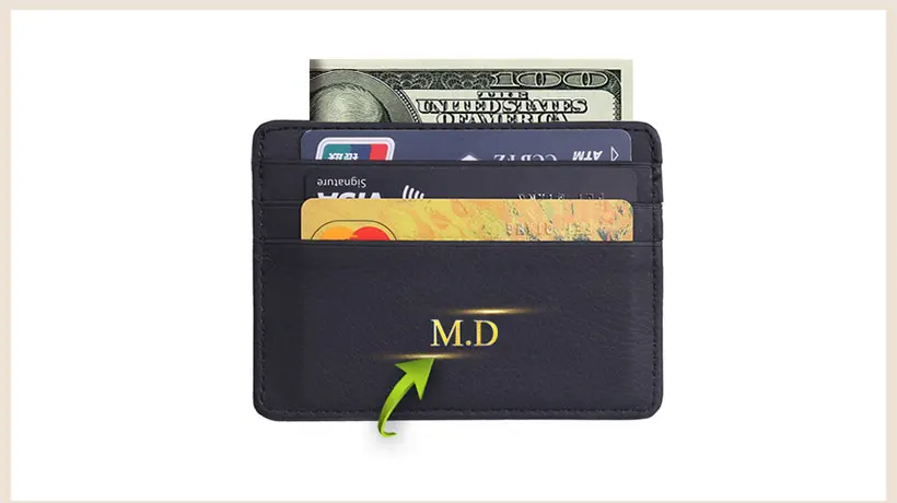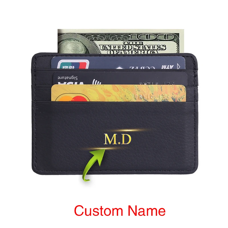 Прочный тонкий держатель для карт с гравировкой имени для мужчин и женщин, дорожный кошелек из искусственной кожи для банковских карт, удостоверения личности, мини-чехол с зажимом для денег