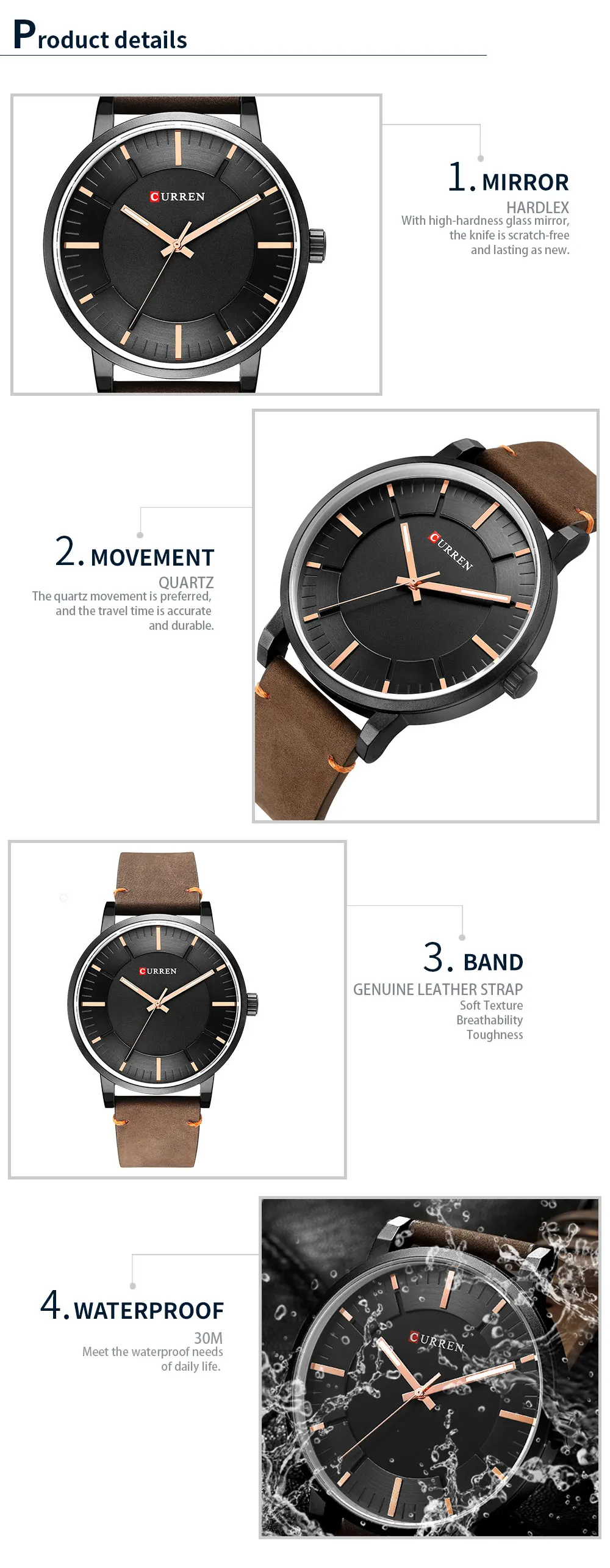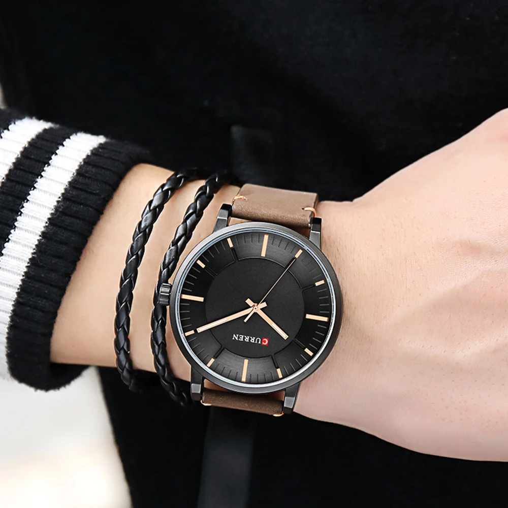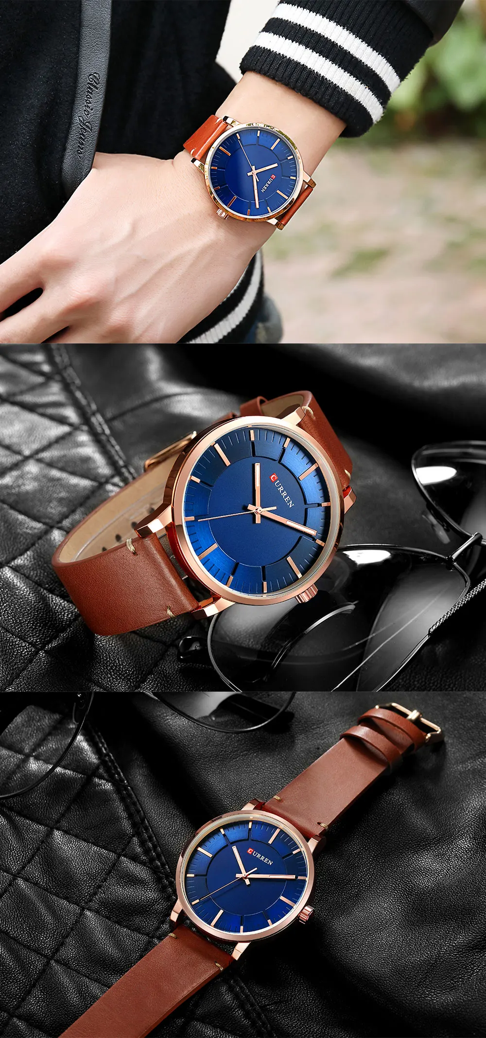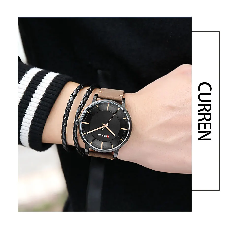 CURREN Кварцевые часы мужские модные повседневные кожаные