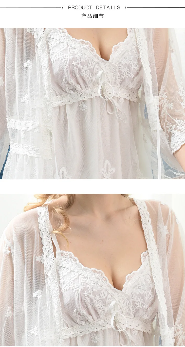 Женский кружевной халат из 2 предметов, комплект ночного белья с M-XXL