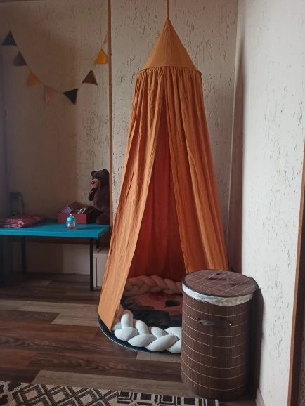 Отличный шатёр в детскую! Ткань хлопок,цвет как такой как заявлен