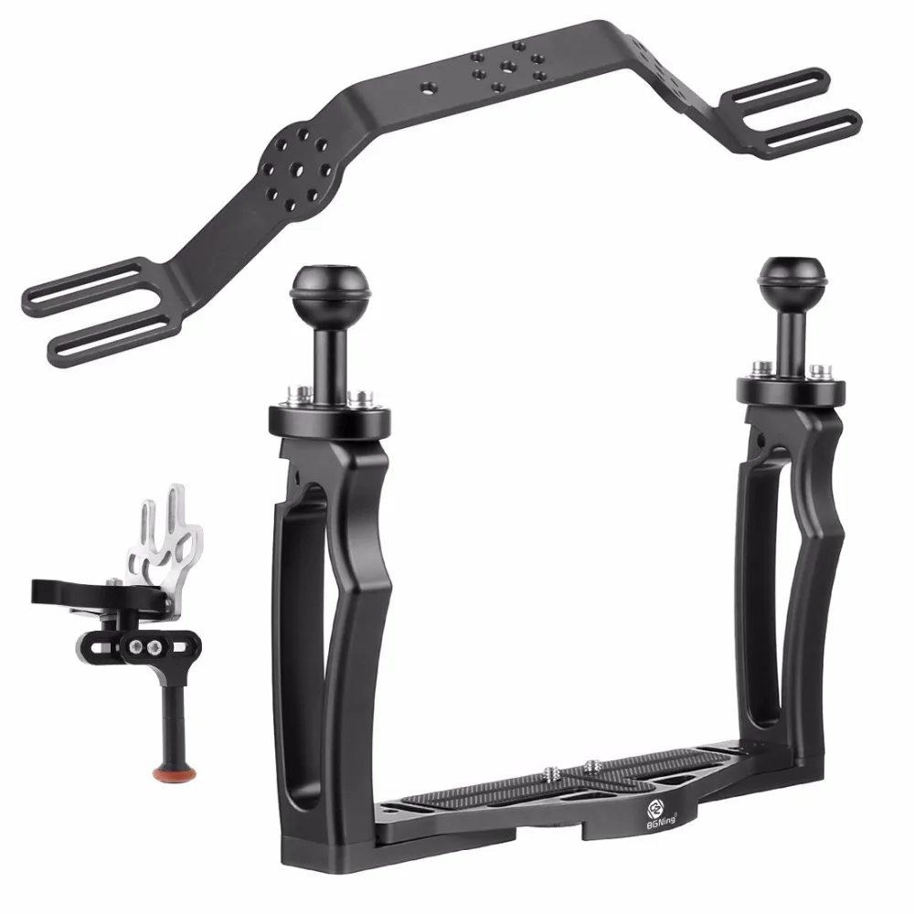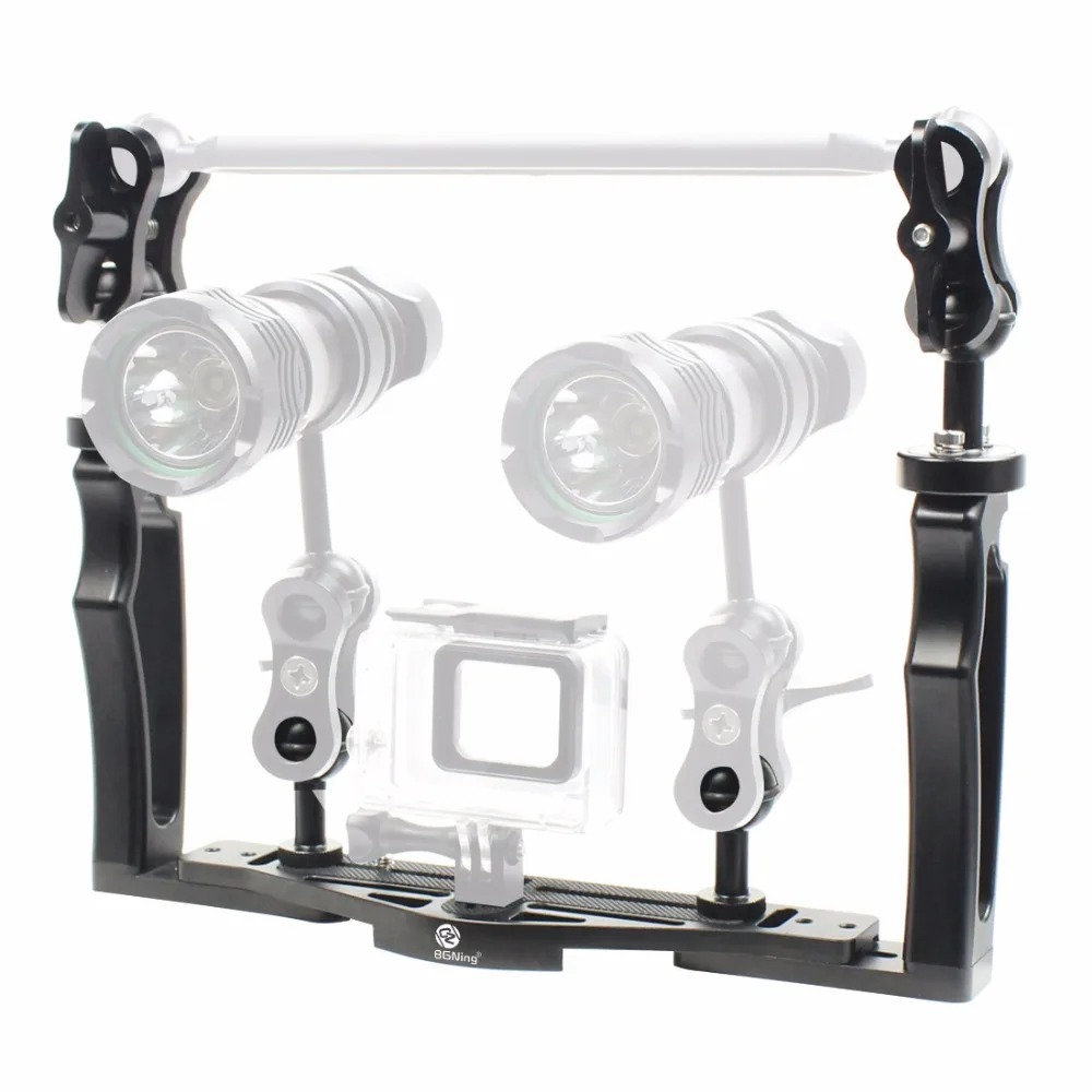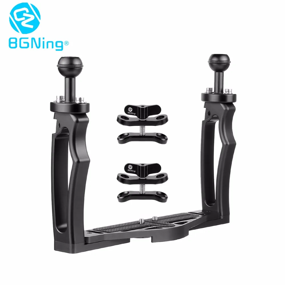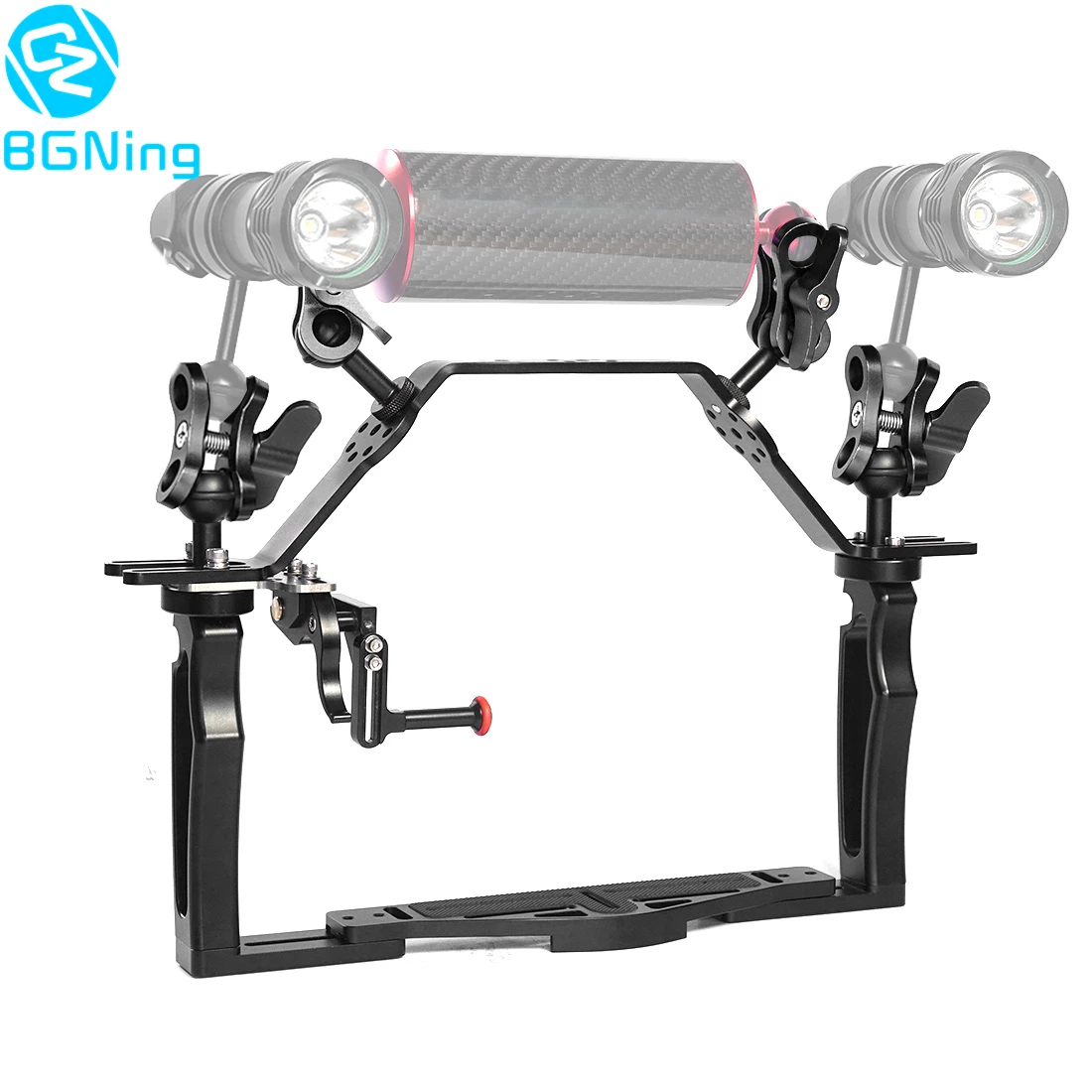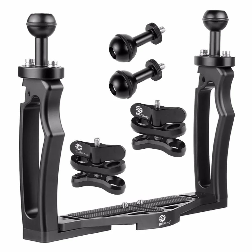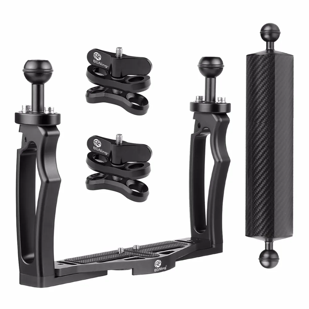 (BGNING) Алюминиевый сплав двойной ручной Дайвинг регулируемый кронштейн комплект для GOPRO для DJI и других спортивных камер, микро-один, SLR Камера Водонепроницаемый Чехол, включая Canon, Sony, Nikon, Panasonic, olympus и т. Д.