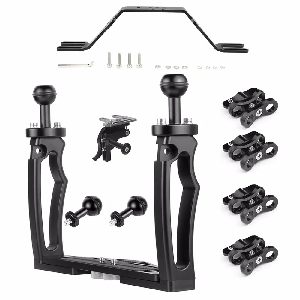 Двойной ручной поднос DSLR для дайвинга, кронштейн с винтовым зажим...