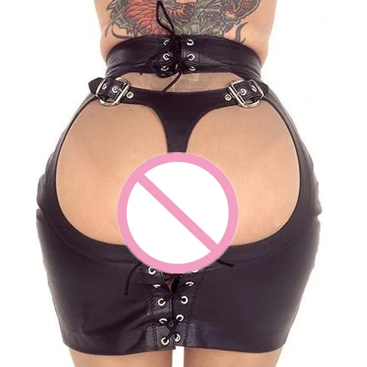 Сексуальная Женская юбка из искусственной кожи со стрингами, Эротическая мини-юбка для ночных клубов, игр