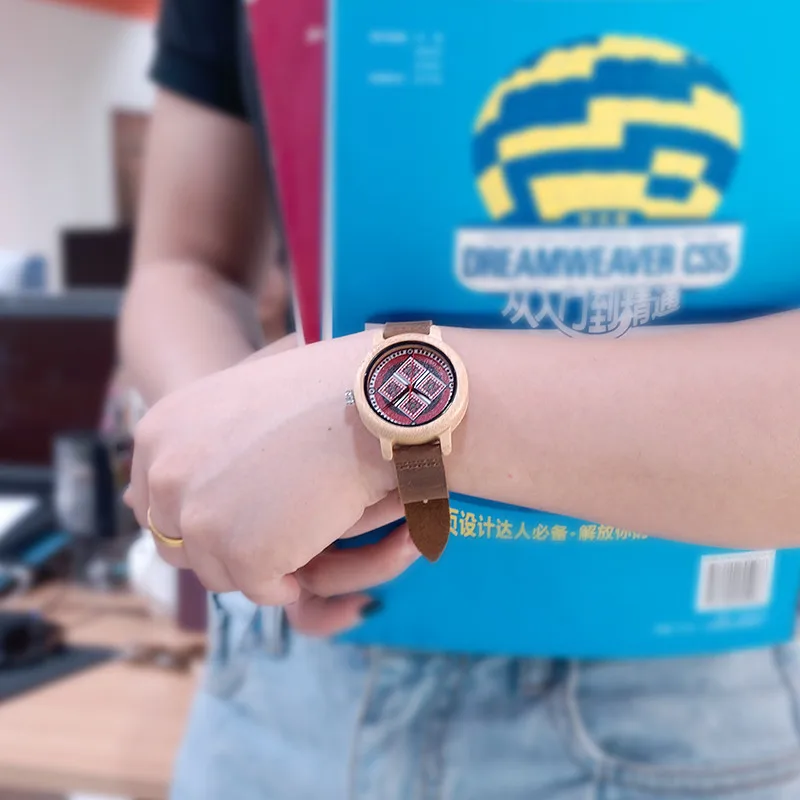 Часы очень милые, прекрасный гравер снизу, конверт тщательно сделан, может четко видеть Текстуру Дерева, кожаный браслет, упакован в брендовую коробку, очень быстрая доставка, рекомендую
