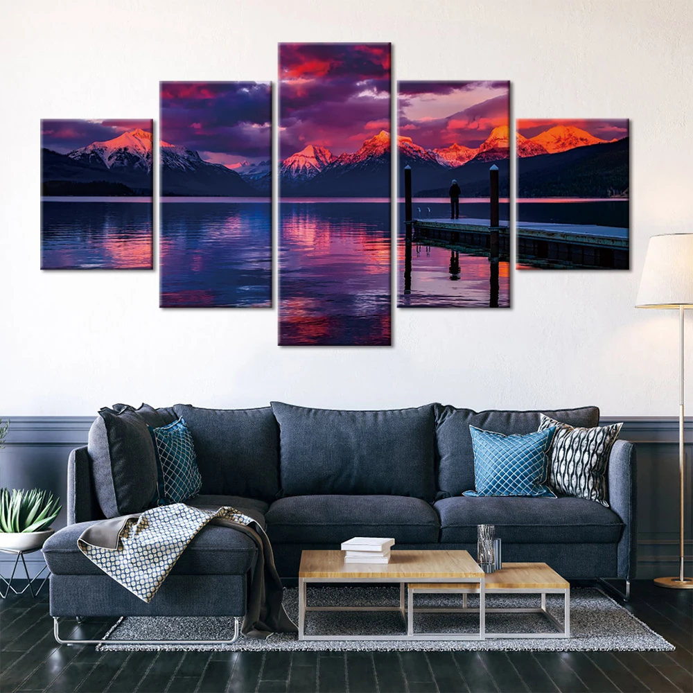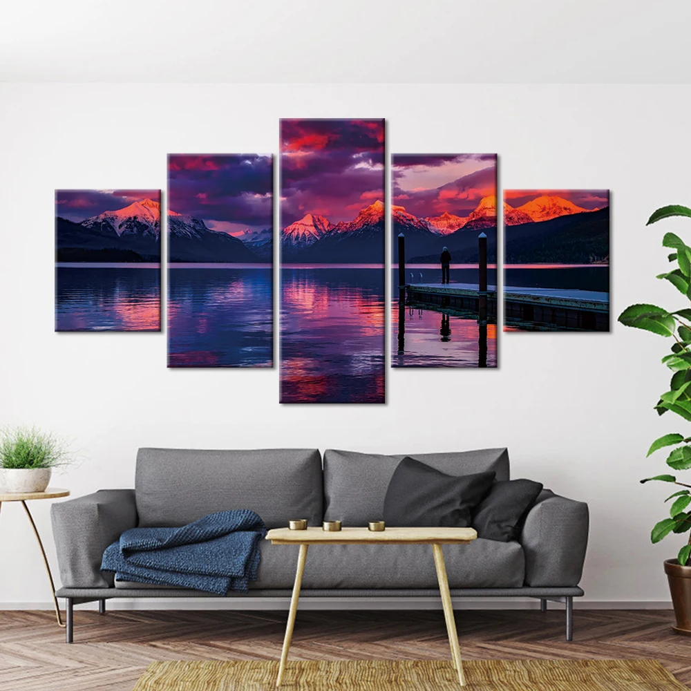 Настенные картины для гостиной, пейзаж, настенная картина на холсте, 5 шт., плакаты и принты, домашний декор