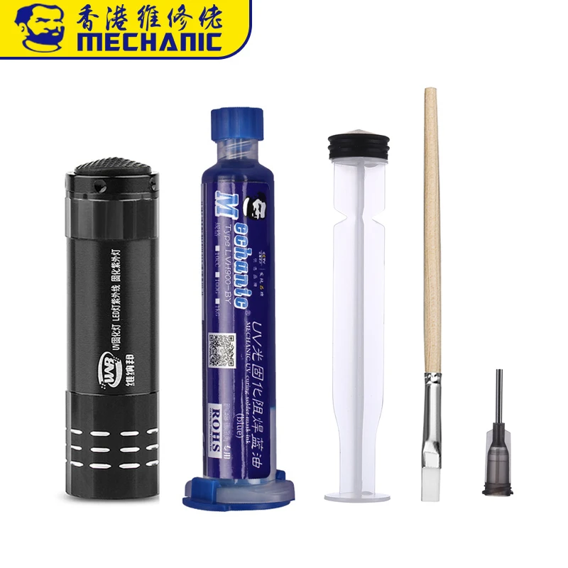 Механический припой, маска, УФ-чернила, синие масляные сварочные флюсы, PCB BGA материнская плата, краска, предотвращающая коррозионную арку Характеристики: Бренд: Mechanic. Цвет: синий. Состояние отверждения: УФ-свет Применение: печатная плата для ремонта основных материалов.