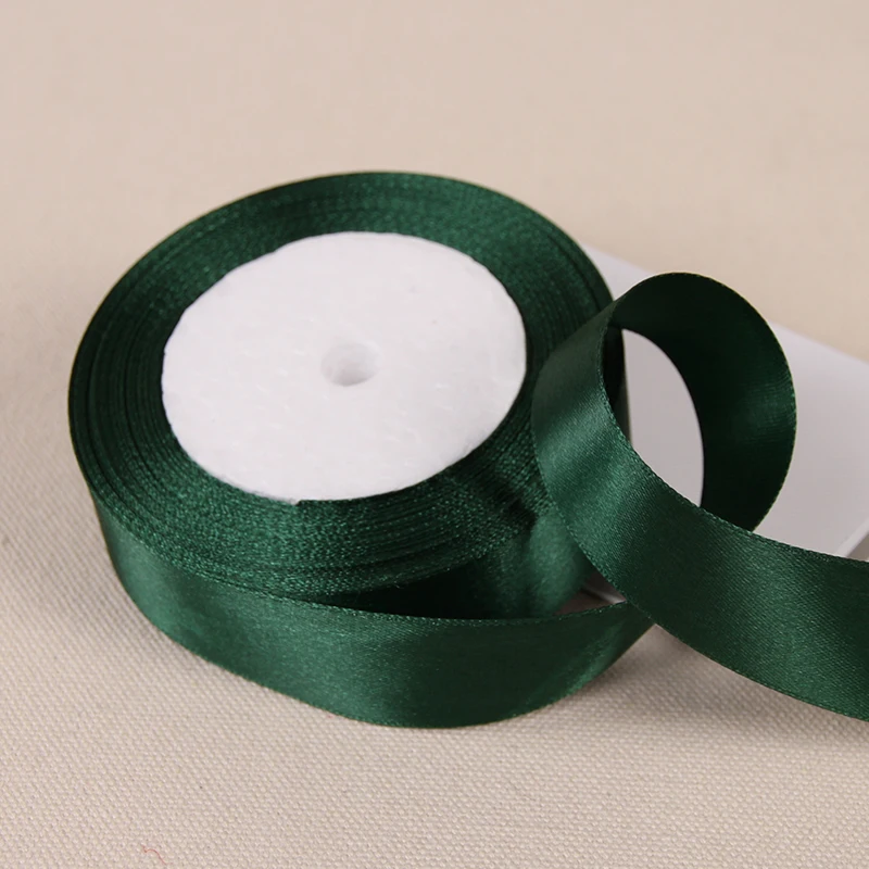 25 ярдов темно-зеленая шелковая атласная лента, свадебное украшение, домашнее украшение, подарок, швейная ткань, материал банта, DIY аксессуары для волос