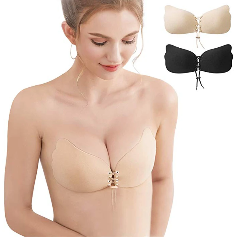 Бюстгальтер женский без бретелек, мгновенный подъем груди, невидимый для сосков с наклейками, силиконовый, с эффектом пуш-ап, без спинки
