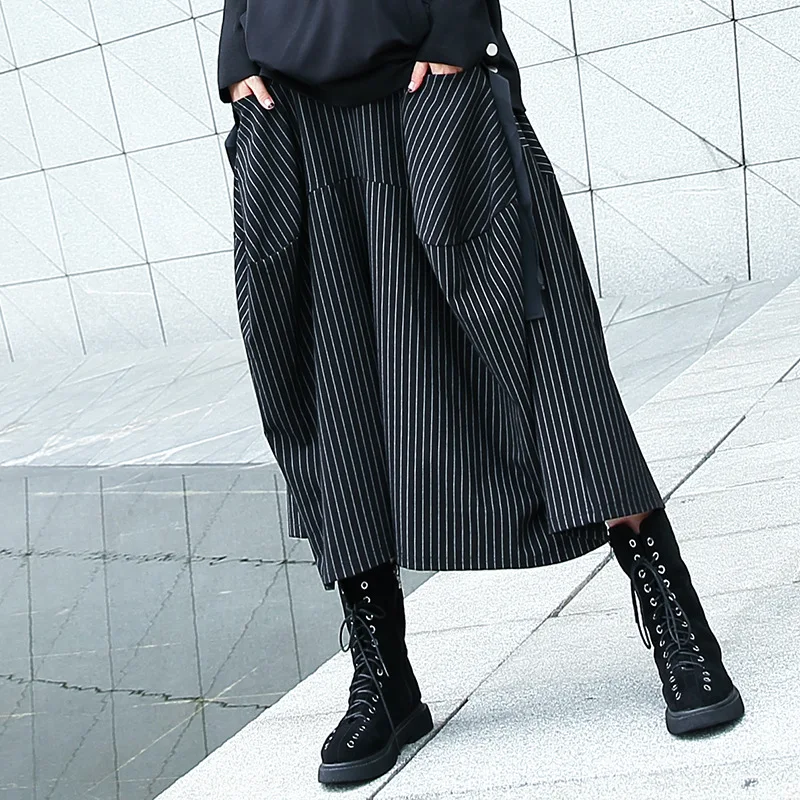 Женские брюки в полоску Johnature, повседневные штаны с широкими штанинами, до середины икры, с карманами, свободные, уличная одежда на весну-лето 2021