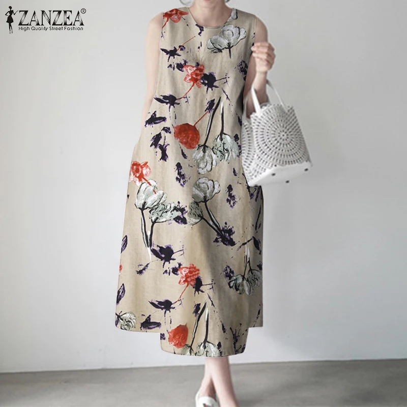 Женский сарафан без рукавов ZANZEA, летнее платье сарафан, длинное женское платье макси, платья для вечерние, 7