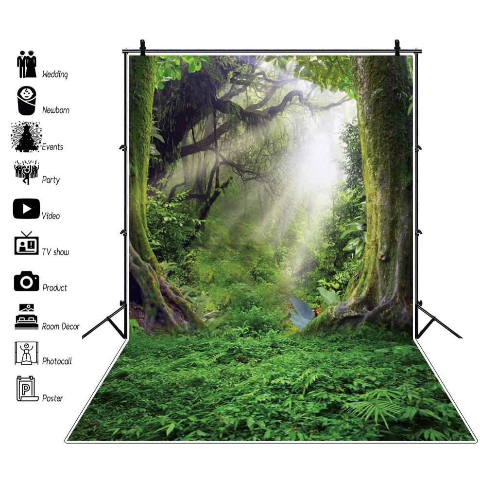 Фон для фотостудии с изображением летних тропических лесов джунглей зеленых листьев весеннего побережья природы пейзажа младенца