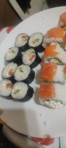 Кладешь любимую еду на рис, кладешь все, что захочешь, а затем свертываешь ее бамбуковой занавеской