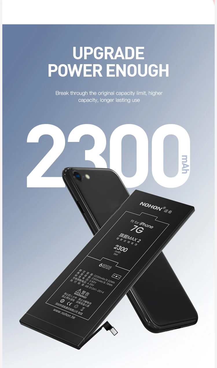 Номер моделиNohon Battery For Apple iPhone 7 iPhone7 7G 2300mAh