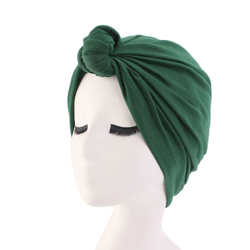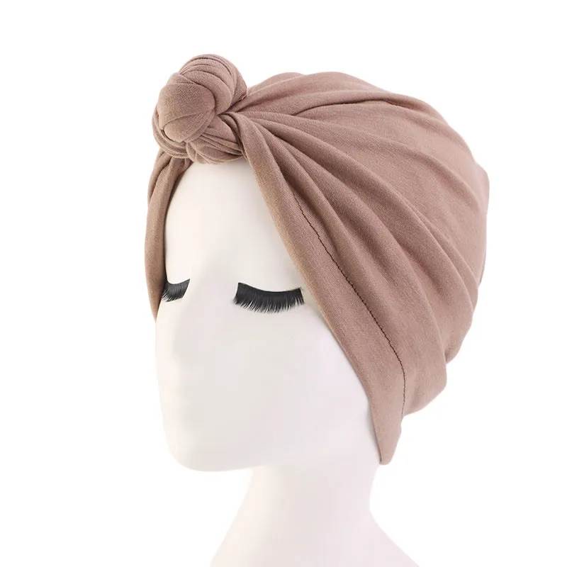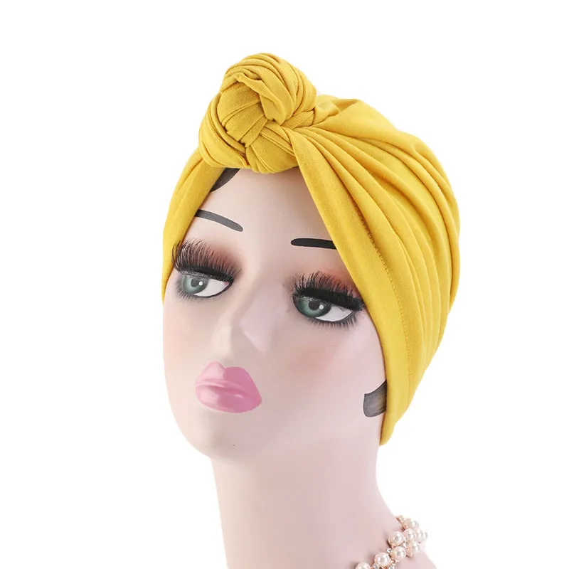 Женская эластичный тюрбан шапка с узлом, хлопковый хиджаб, однотонн...