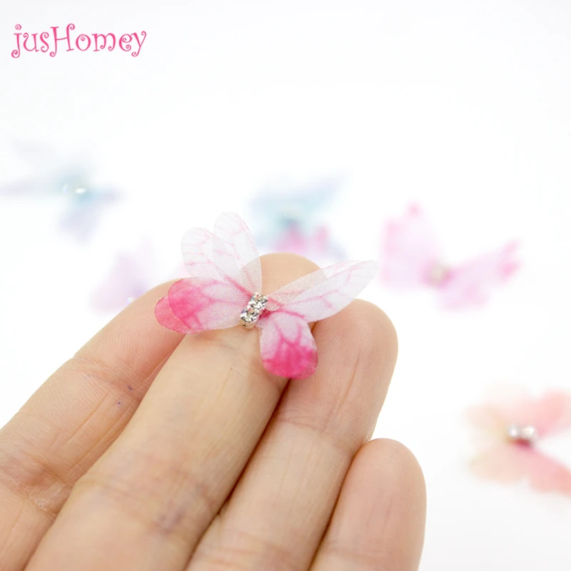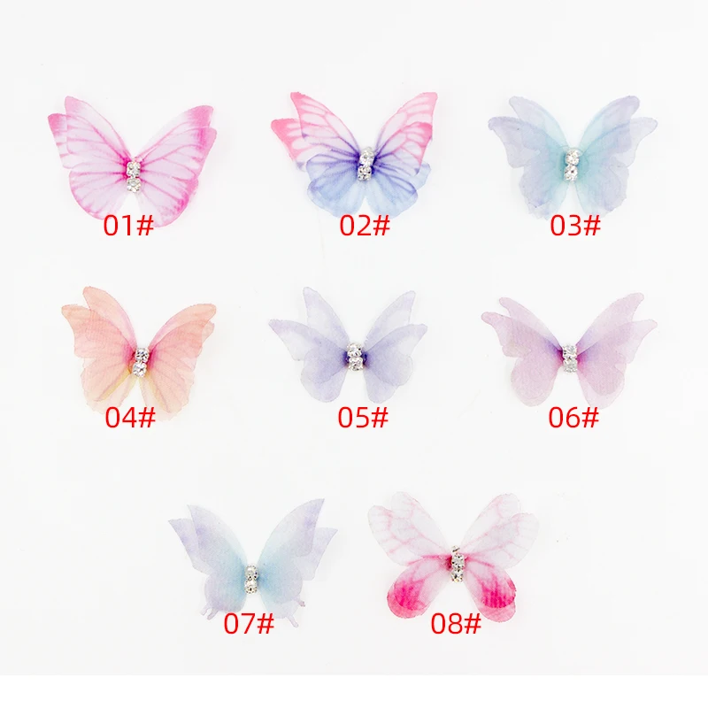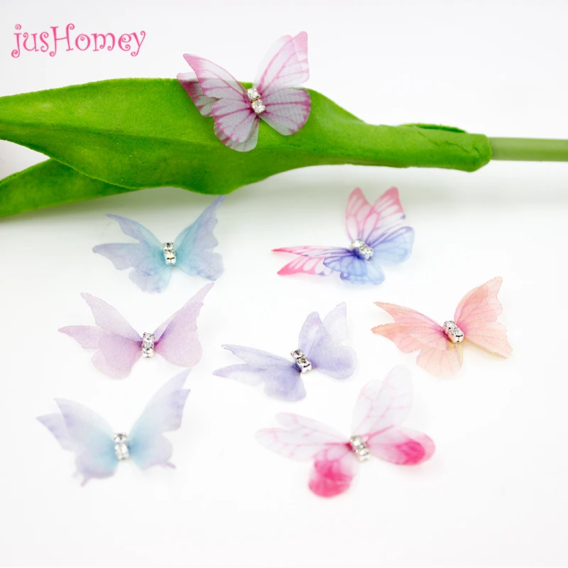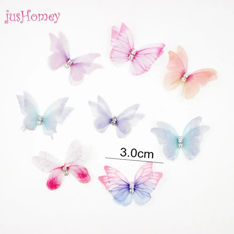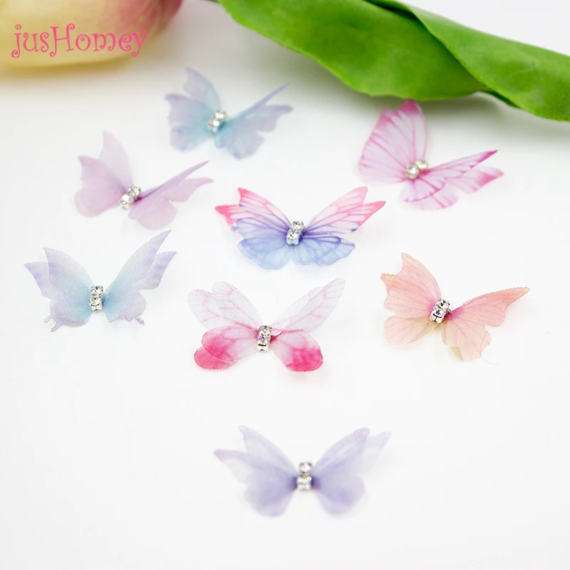 100 шт. двухслойные аппликации из органзы в виде бабочек, шелковые бабочки 30 мм, стразы для самостоятельного изготовления ювелирных украшений, чокер, заколки для волос