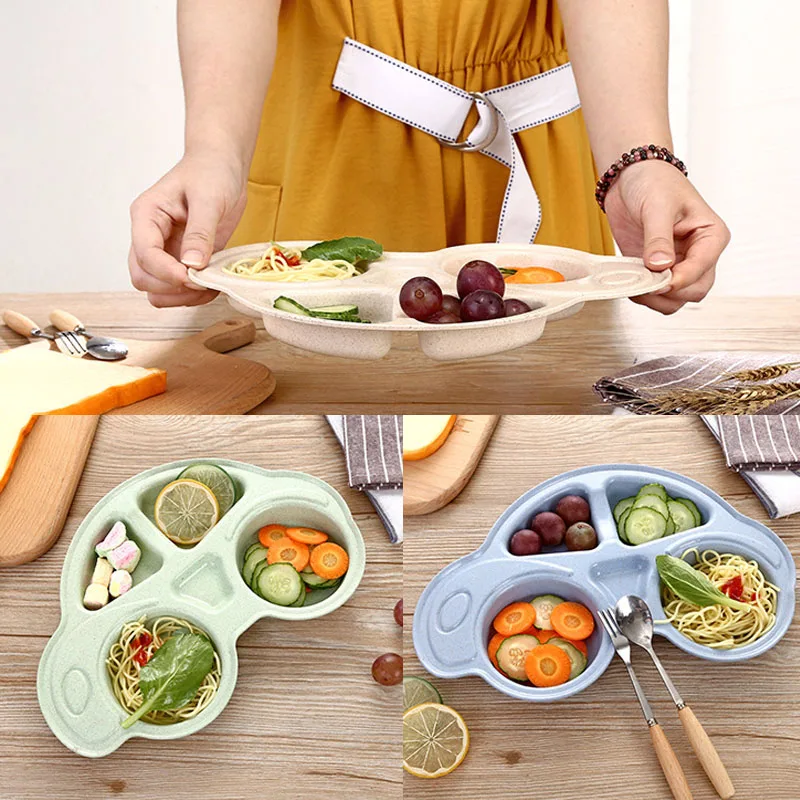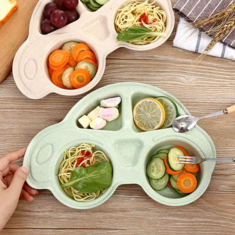 Экологически чистая портативная детская тарелка с мультяшным автомобилем, Детская тарелка, Детская тарелка, пшеничная солома, миска для младенцев