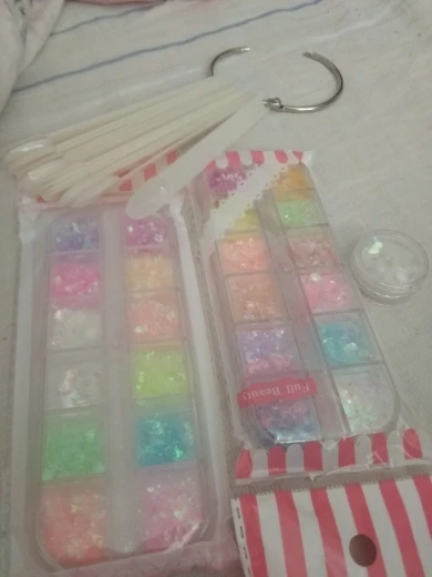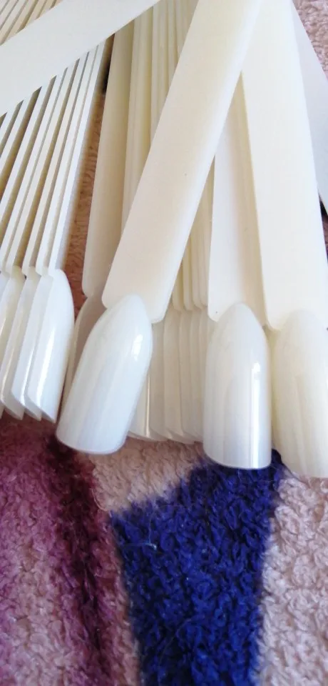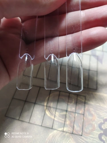 Прислали не тот цвет. Я заказывала прозрачные, а пришли бежевые. Пластиковое кольцо постоянно расстёгивается, пришлось перевешивать типсы на металлическое. Качество так себе.