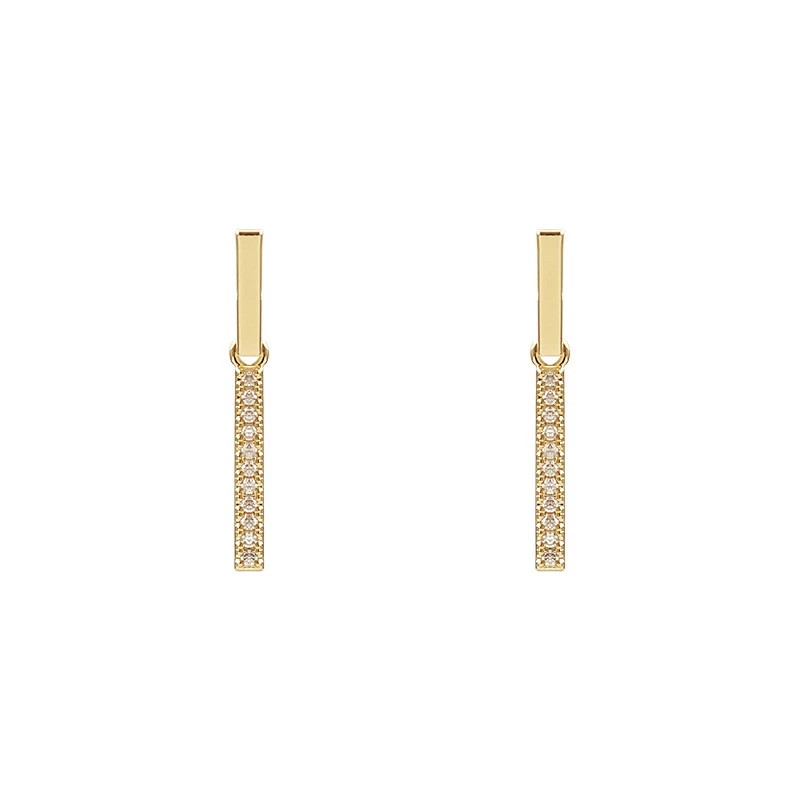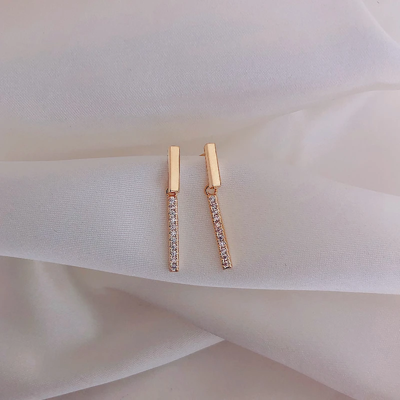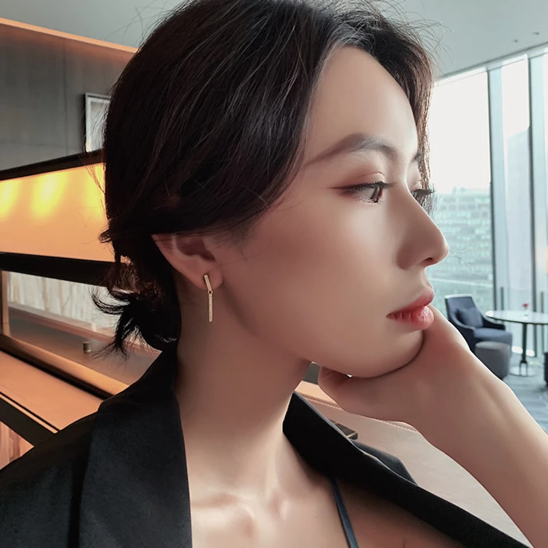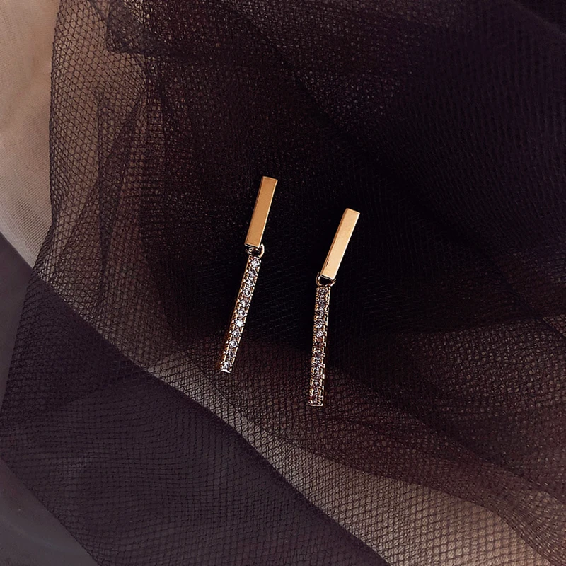 Серьги женские, блестящие, стразы, с металлической полоской золотистого цвета