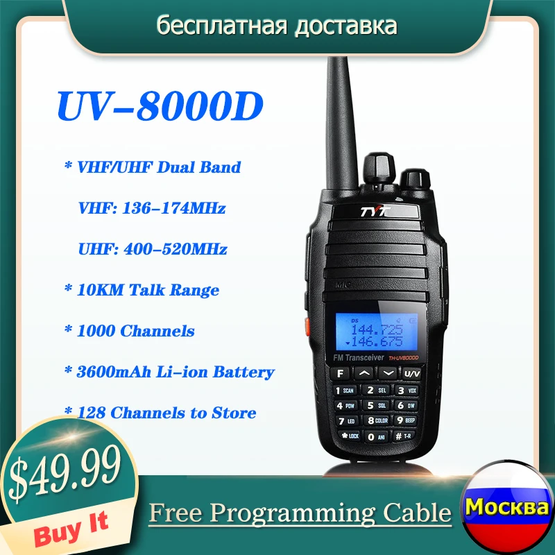 Двухдиапазонная рация TYT TH-UV8000D, 10 Вт, 136-174400-520 МГц, Любительский двухдиапазонный радиопередатчик