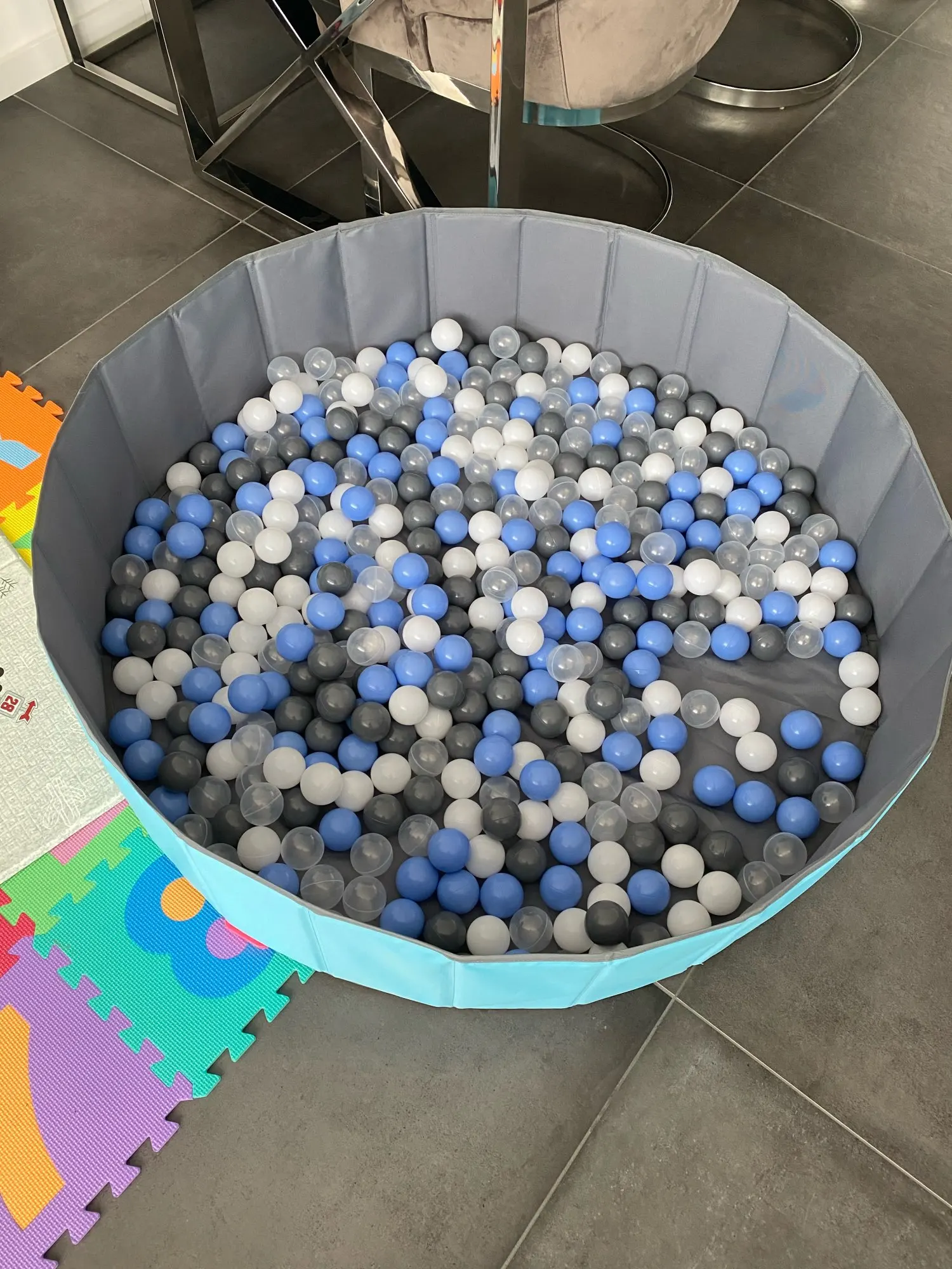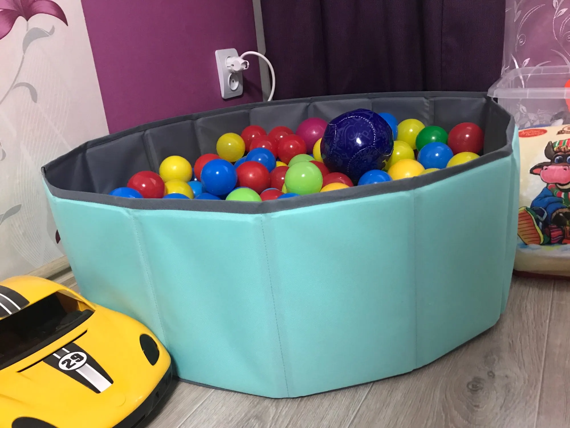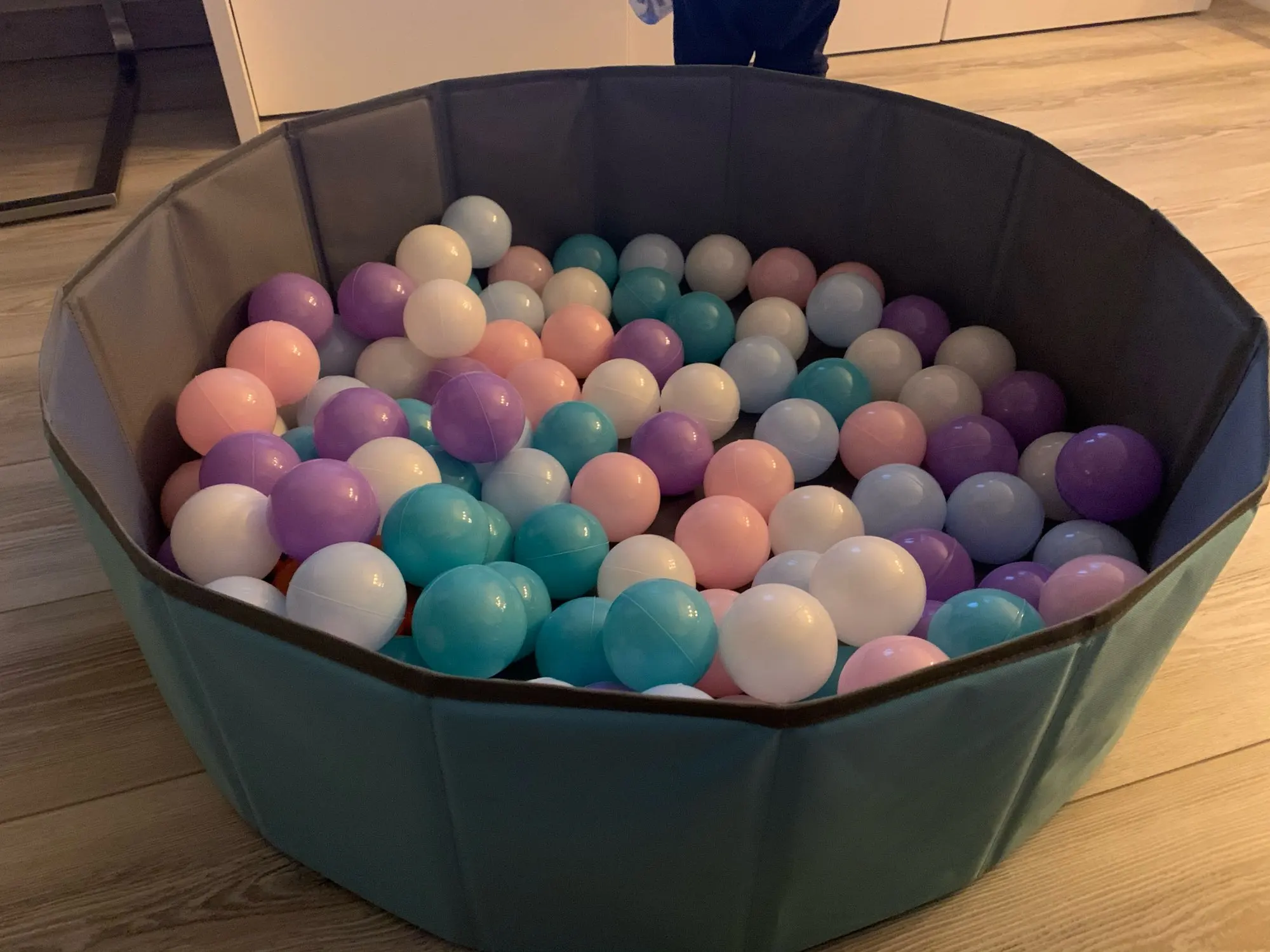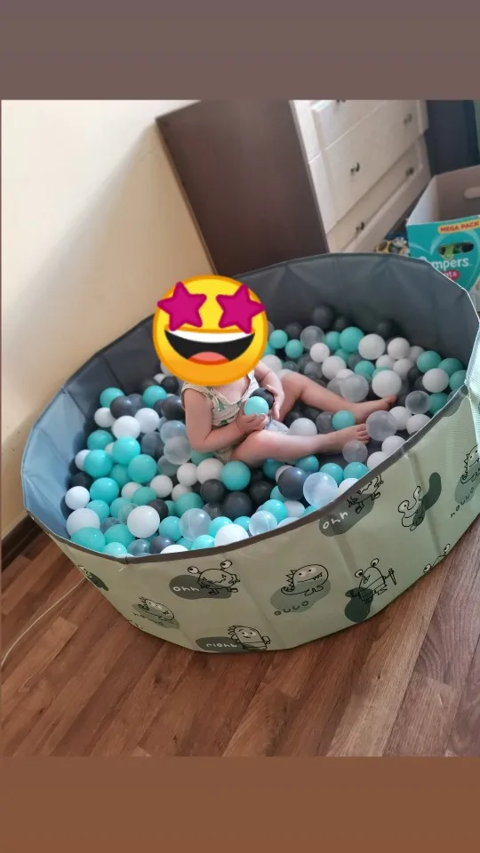 бассейн супер,не мягкий ,хранение удобное в сложенном виде в мешке. с количеством шариков у нас промах) нужно от 400 не меньше на наш размер в метр