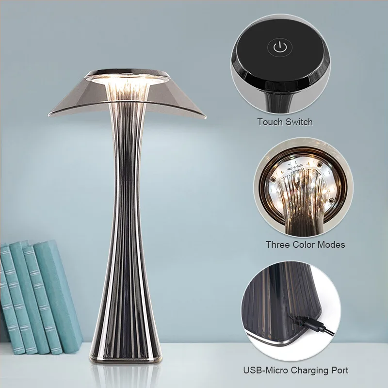 Светодиодная настольная лампа, приглушаемый светильник для чтения с защитой глаз и зарядкой от USB, прикроватная лампа с прозрачными кристаллами, 3 цвета